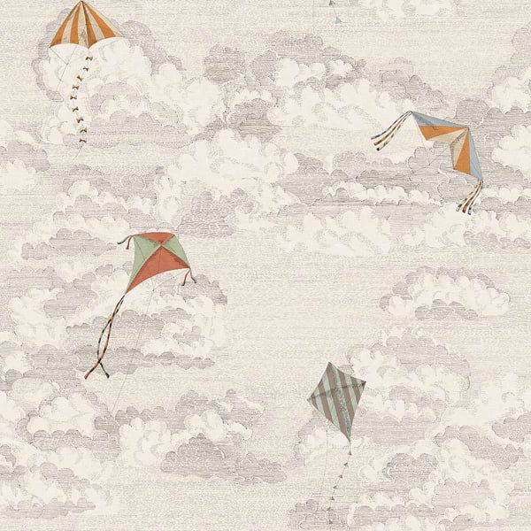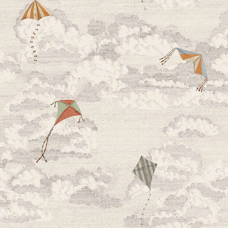 Dans un ciel imaginaire, le papier peint panoramique Bonnie and Kites déploie une envolée de cerfs-volants. Chaque figure, dessinée à la main, flotte entre des nuées délicatement hachurées et compose une danse suspendue. Ce motif poétique signé Sandberg mêle la légèreté enfantine à une douceur rétro. Le contraste entre les formes colorées et le ciel nuageux met en valeur la finesse du tracé.