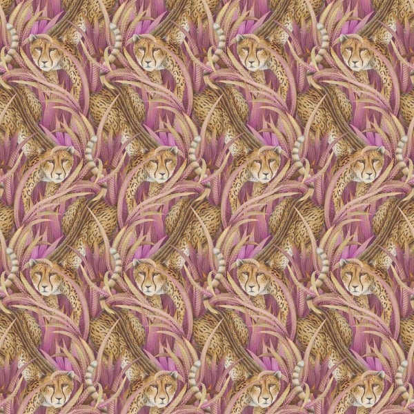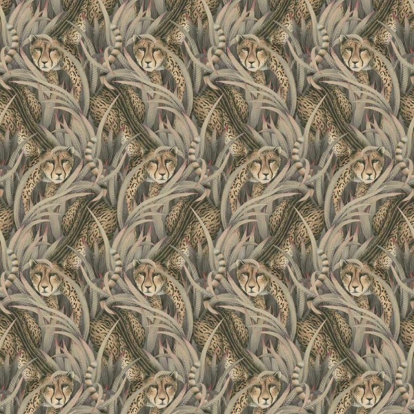 Des guépards apparaissent dans les feuillages denses du papier peint Cheetah Prowl, une création signée Cole and Son. Le motif animalier illustre leur déplacement silencieux à travers une jungle stylisée, où chaque feuille s’étire en un geste fluide. L’ensemble joue sur la profondeur et le rythme, traçant un univers vivant. Le dessin naturaliste révèle la grâce des félins et la richesse du décor.