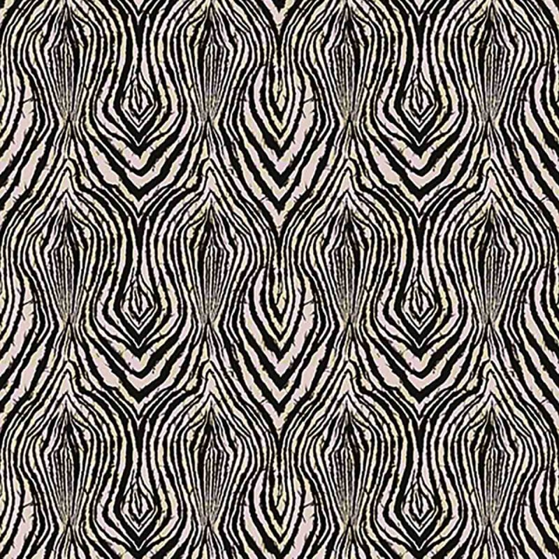 Avec ses courbes tigrées, African Zebra révèle un papier peint panoramique dont le motif animalier se distingue par son intensité rythmique. Les lignes sinueuses forment une danse graphique aux allures hypnotiques, entre abstraction et figuration. Roberto Cavalli amplifie cet effet visuel avec une mise en miroir qui crée un mouvement ondulatoire fluide. Chaque contour évoque la spontanéité d’un geste libre sur une surface texturée.
