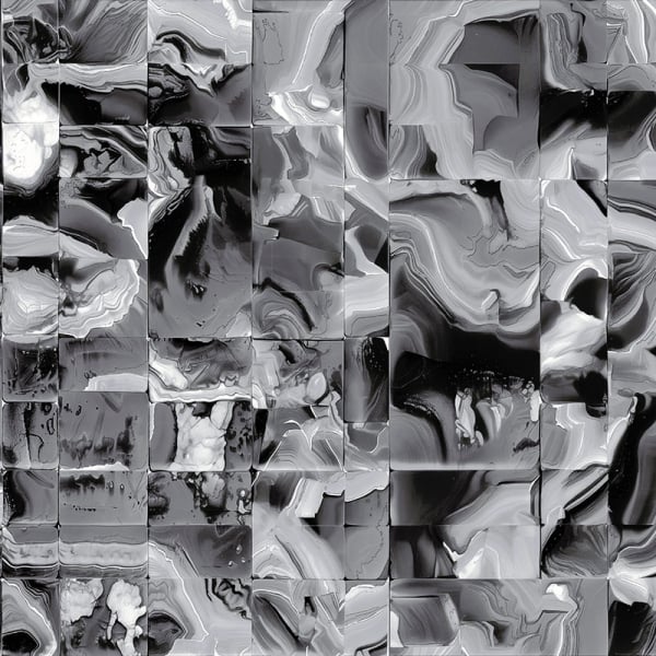 Alone Together de Londonart est un papier peint panoramique à la texture gaufrée, proche de celle d’une toile peinte. Le motif géométrique abstrait déploie des formes minérales et des veines fluides inspirées du marbre ou de l’agate. L’ensemble compose une surface vibrante où les contrastes se répondent. Chaque fragment est animé d’un mouvement profond et silencieux.