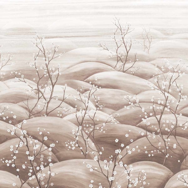 Le papier peint Sakura de Masureel déploie un paysage panoramique inspiré de l’estampe japonaise. Dans une composition harmonieuse, des branches de cerisier en fleur traversent un relief doux, presque onirique. La surface structurée révèle un motif floral suspendu, entre brume et silence. Chaque détail saisit une nature immobile, propice à une atmosphère apaisée et contemplative.