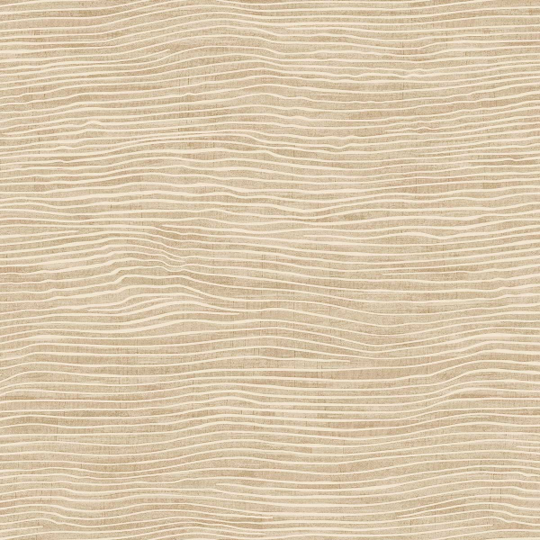 Die von Masureel herausgegebene Tapete Lucence zeigt ein geometrisches Muster in voller Fluidität. Eine Folge von Wellenlinien durchzieht die Oberfläche und erinnert an die geschmeidige Bewegung einer Welle auf einem matten Untergrund. Die unregelmäßige Linie scheint sanft zu zittern und erzeugt einen fast organischen Rhythmus. Diese freien Streifen beleben die Wand mit einem Gefühl kontinuierlicher Vibration.