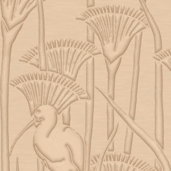 Édité par Arte, le papier peint Ibis déploie une composition en relief où s’entrelacent tiges élancées, ombelles graphiques et silhouettes d’ibis. Le motif narratif évoque les rives végétalisées du Nil, où la faune s’anime entre les roseaux. Chaque élément surgit dans une texture tactile, presque sculptée. L’ensemble respire une élégance silencieuse, ancrée dans la matière.