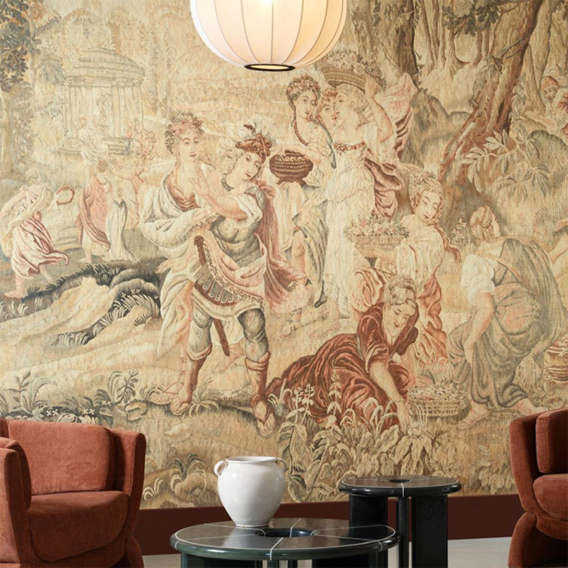 Créé par Arte, le papier peint Récolte des Fleurs transpose l’esprit d’une tapisserie ancienne dans un ornement mural. Inspiré d’une œuvre de la manufacture de Beauvais, son motif représente une scène champêtre. Par leurs gestes animés, des cueilleurs de fleurs semblent figés dans l’élan d’une célébration joyeuse. Chaque détail rend hommage à l’élégance des arts décoratifs d’antan.
