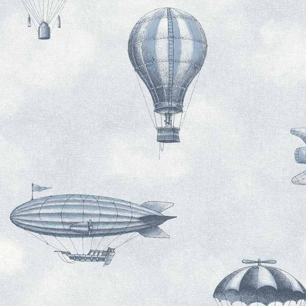 Édité par Eijffinger, le papier peint Voyage déploie un ciel animé de montgolfières et de dirigeables aux lignes anciennes. Le motif figuratif détaille nacelles suspendues, enveloppes nervurées et cordages finement tracés. Chaque élément semble flotter avec légèreté dans une étendue silencieuse. L’ensemble compose une scène aérienne empreinte d’imaginaire et d’exploration.
