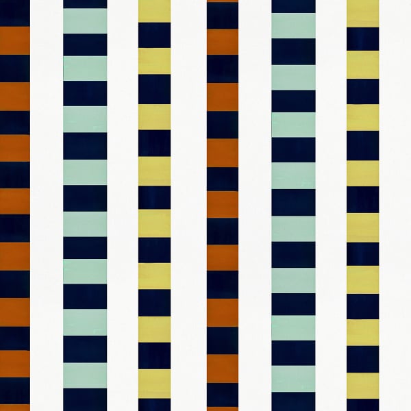 Bien Fait décline le papier peint Circus en une suite verticale de rayures graphiques. Les bandes alternées dessinent un motif régulier, presque hypnotique, qui joue sur le rythme et la répétition. Des formes carrées et rectangulaires accentuent cette construction visuelle rigoureuse. Une légère vibration optique émane de cet agencement étudié, renforcée par une dynamique continue.