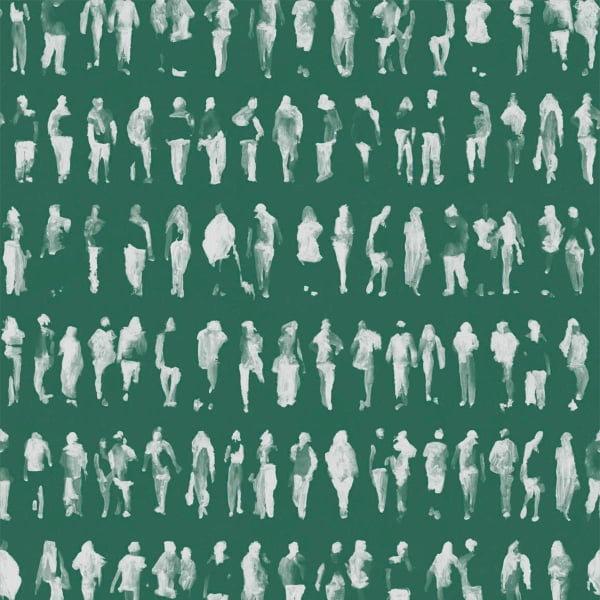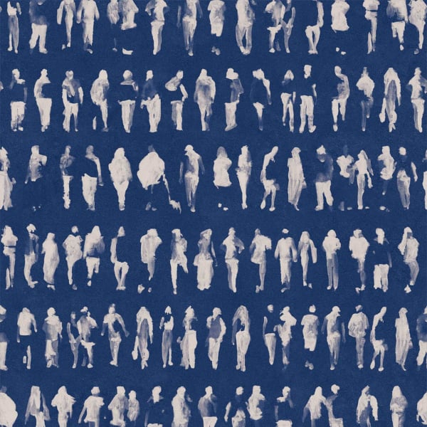 Le papier peint Executives de Tres Tintas Barcelona affiche un motif graphique rythmé par une succession de silhouettes urbaines. Des figures anonymes se détachent en ombres diffuses, captées dans l’élan de la marche. Le dessin évoque l’agitation des heures matinales à travers les physionomies variées qui se frôlent dans une cadence soutenue. Cette procession humaine compose une trame dense et vibrante.