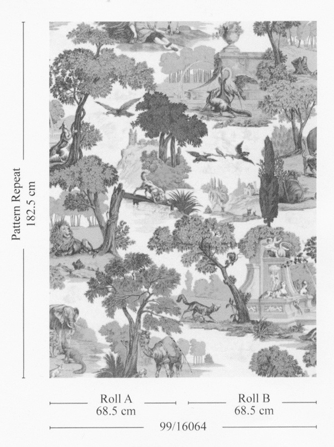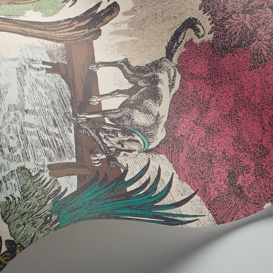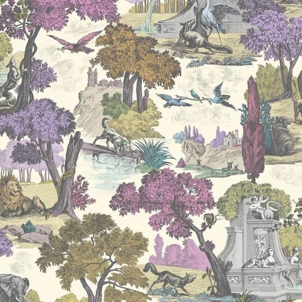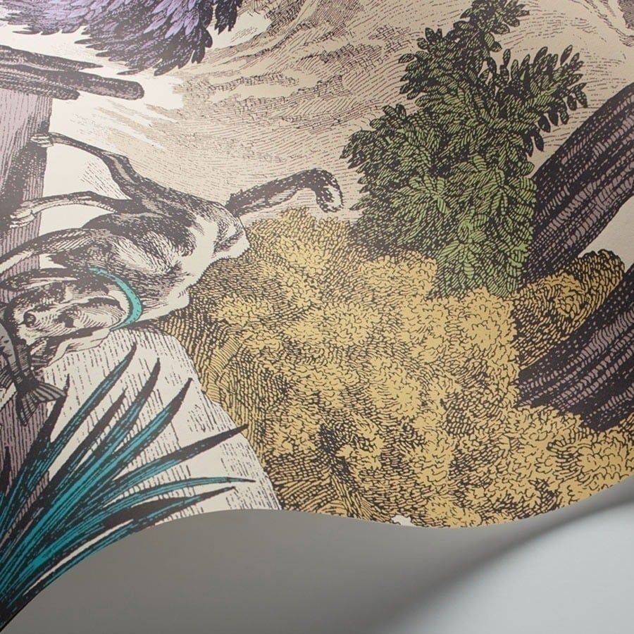 Le panneau Versailles Grand est réalisé dans deux coloris très fraîs et contemporain. Il fait écho aux papiers peints panoramiques français du XVIIIème. S'inspirant des fables de La Fontaine, il est le cousin du papier peint Versailles par Cole and Son.