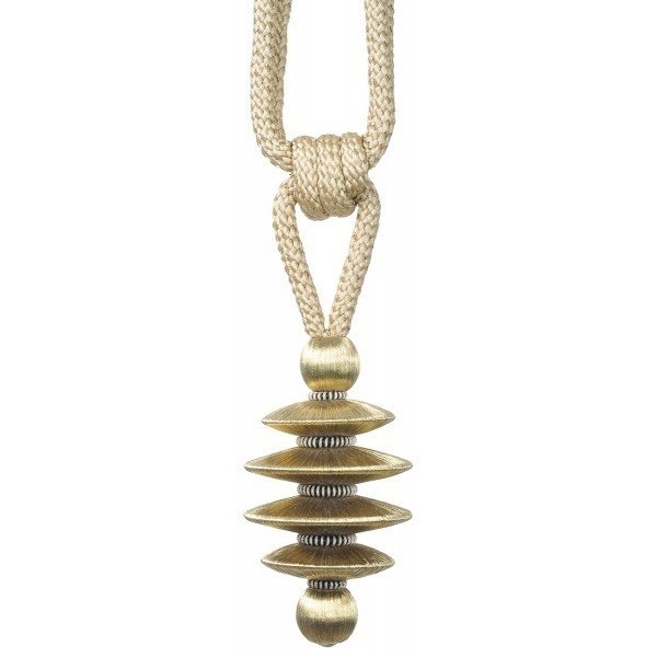 Cette embrasse de rideau de la Collection Onyx se distingue par sa forme contemporaine. Décliné dans des coloris nacrés sublimés par des touches métalliques, ce passement Houlès attire l'œil par son originalité et la qualité de sa facture.