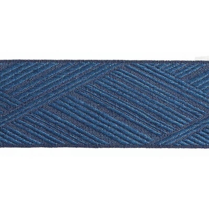 Le galon Océanie présente un motif à rayures stylisées disposé sur ses 60 mm de largeur. Des lignes se tracent en diagonale, prenant des directions opposées pour animer le dessin. L'effet visuel obtenu est graphique et sa texture est agréable au toucher. Cette création signée par Houlès est faite majoritairement de lin de qualité.