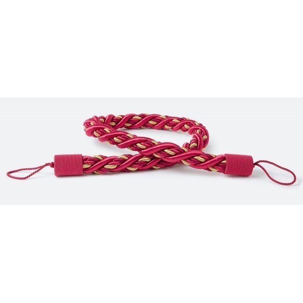 La simplicité et l'élégance de l'embrasse câblé Scarlett se reflètent sur sa parure. Pour cet élément décoratif, Houlès joue avec les couleurs complémentaires de ces différents fils torsadés et lisses. La brillance de ce passement lui procure une touche luxueuse et glamour. À ses extrémités, on trouve des arrêts de forme cylindrique.