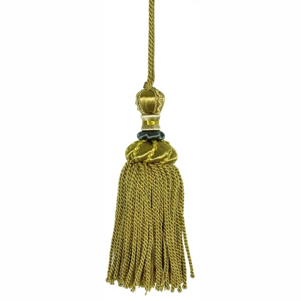 Gland de clef orné d'un pompon à franges torsadé. Un jeu de matière satiné à fort pouvoir ornemental.