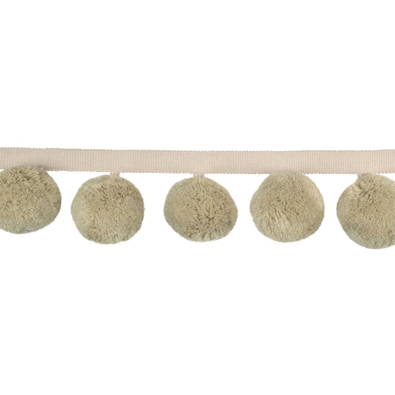 De petits cercles moelleux composent la frange pompons Calypso 75 mm éditée par Houlès. Les pompons, suspendus sur une bande texturée, dessinent un motif décoratif au rythme régulier. La hauteur généreuse souligne l’ampleur du volume et la souplesse du mouvement. Chaque détail révèle un travail textile riche en relief.