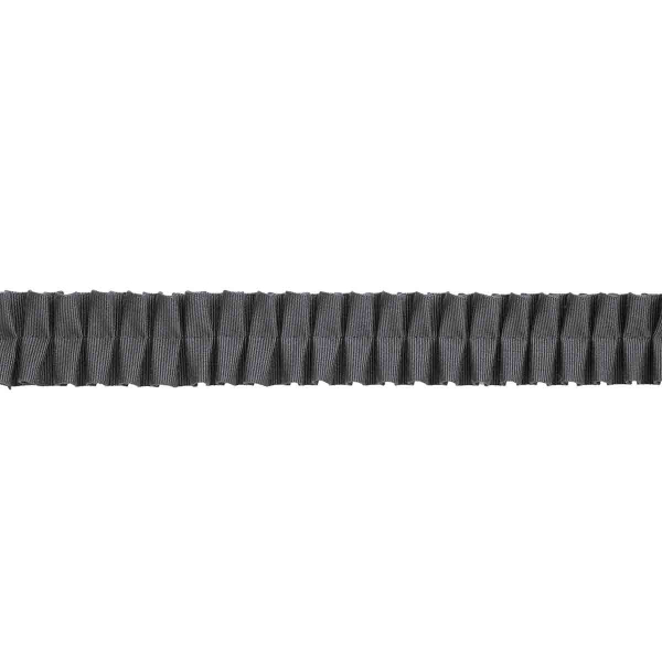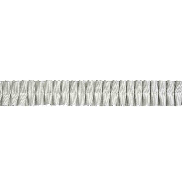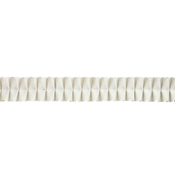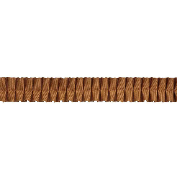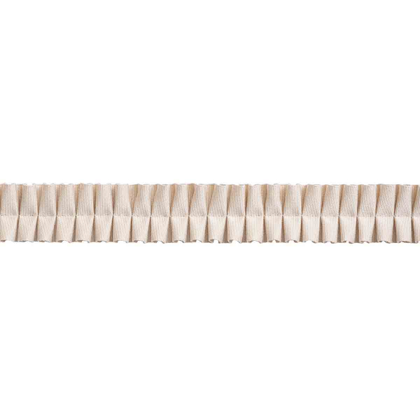 Le Galon Falbala est une création Houlès au plissé net, articulé en lignes graphiques régulières. Son ruban à larges godrons dessine un motif géométrique discret, presque architectural. L’effet de volume naît d’un pliage savamment rythmé qui évoque un passement de dentelle moderne. L’ensemble joue sur la texture avec une trame dense au toucher structuré.