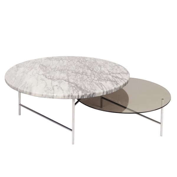 Plateau : Verre, Marbre - Pieds : Inox