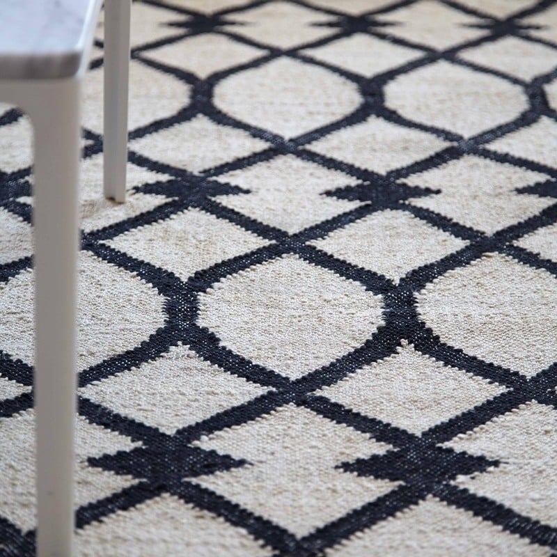 Le tapis Rodas de Gan Rugs s'inspire des courbes de la fleurs de lys. En fibres de jute mélangée, Rodas est fabriqué selon les techniques traditionnelles du Kilim. Sa légereté et son volume permettent une utilisation au sol ou au mur, créant ainsi un jeu de formes géométriques et apportant une touche d'originalité à l'espace.