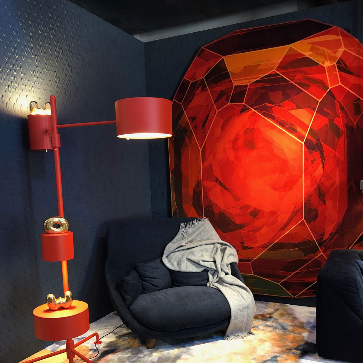 Ingimar Einarsson, artiste islandais connu pour ses images compilant des éléments photographiques par un processus d'abstraction, offre ici un joyau pour la décoration intérieure. Le tapis Crystal Red s'inspire du relief des cristaux d'hydroxyapatite transformé sous les doigts de l'artiste en pierre précieuse. Imprimé numériquement, la précision des couleurs restitue la transparence d'un cristal où chaque facette semble réfléchie par des milliers de miroirs.