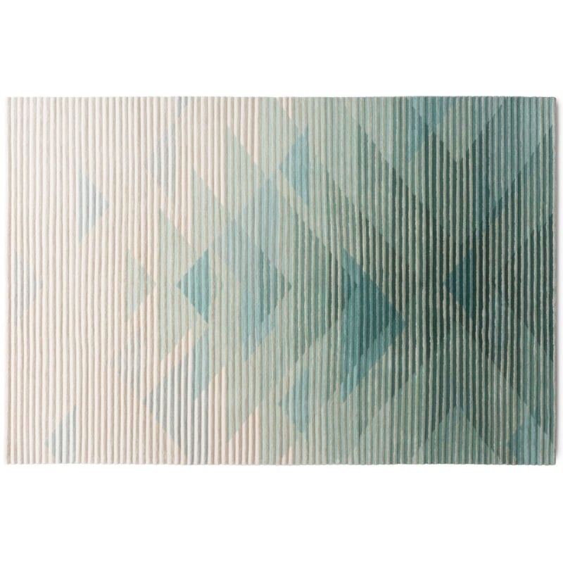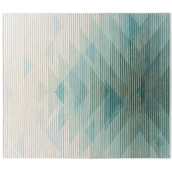 Le Tapis haut de gamme Lake Green s’inspire de la technique d’imagerie lenticulaire consistant à produire des images qui donnent du relief ou qui changent en fonction de l’angle de vue. Des artistes comme Yaacov Agam et Victor Vasarely ont révolutionné le monde de la perception optique dans l’art. Les designers israëliens Yael Mer et Shay Alkalay imaginent pour ce tapis un graphisme très géométrique dans un dégradé de couleur neutre sur un fond clair. Un jeu de transparence et de superposition apporte une touche de légèreté à cette création contemporaine.