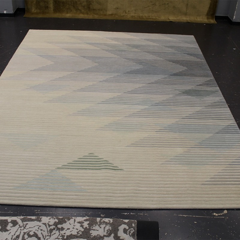 Le Studio Raw Edges basé à Londres crée ce tapis en s’inspirant des artistes appartenant au mouvement Op art qui bousculent le monde de la perception optique dans l’art. À la fabrication de leur projet, ils parviennent grâce à Golran, à traduire merveilleusement bien la technique lenticulaire qui consiste à créer des images donnant une impression de relief ou qui se modifient en fonction de l’angle de vue. Les formes géométriques qui composent la surface sont espacées et transparentes. Minimaliste, le graphisme de ce tapis aux couleurs claires, apporte de la lumière et la modernité à votre espace.