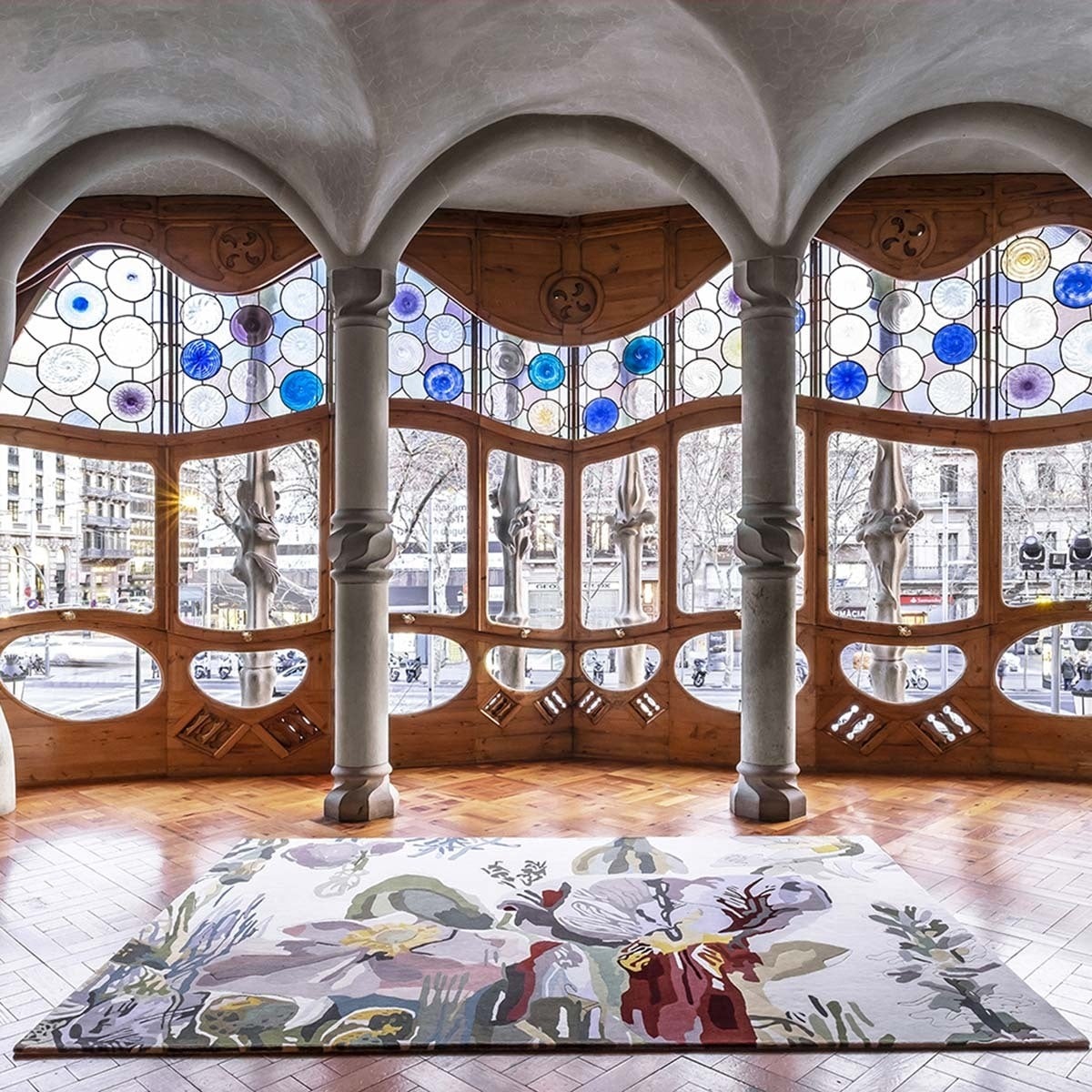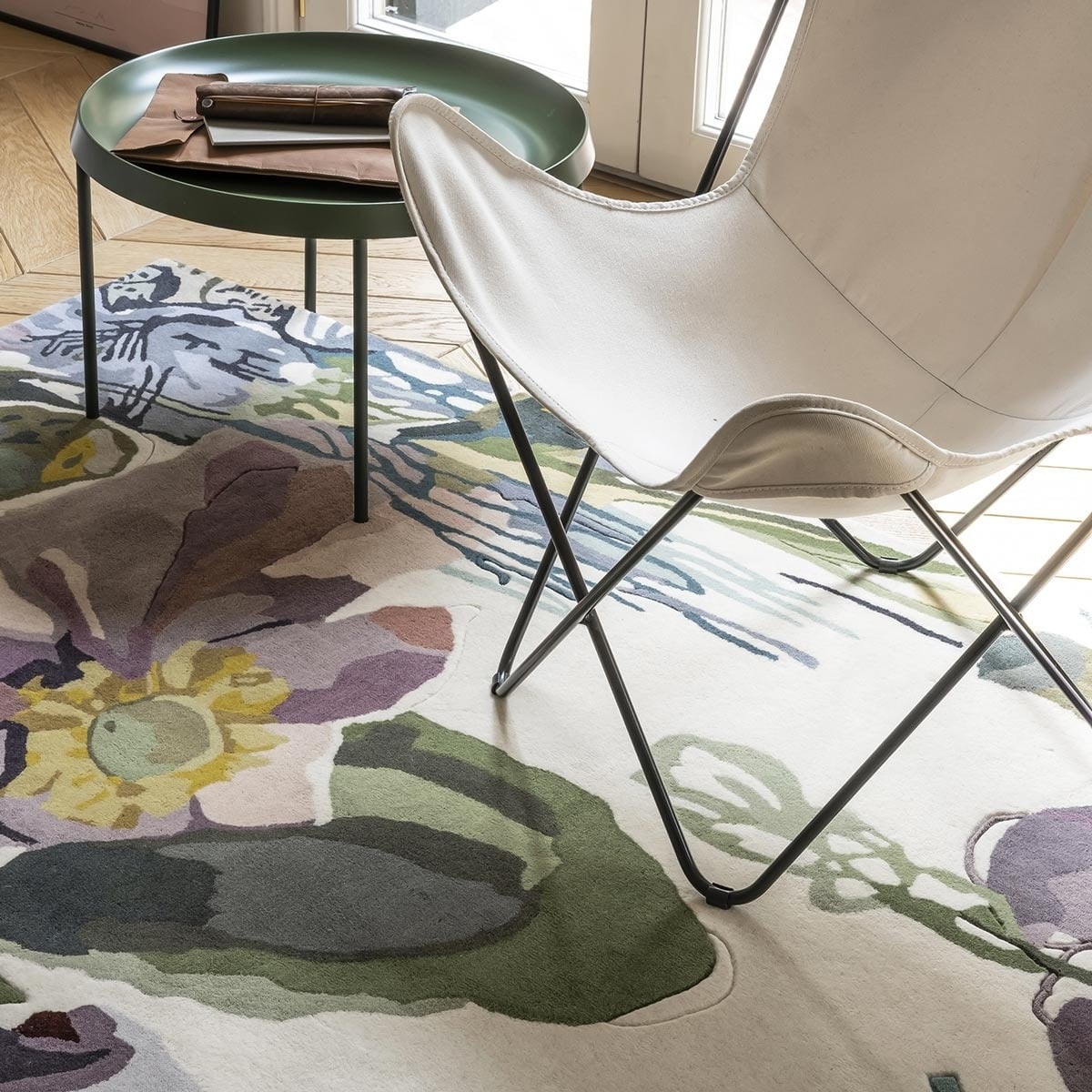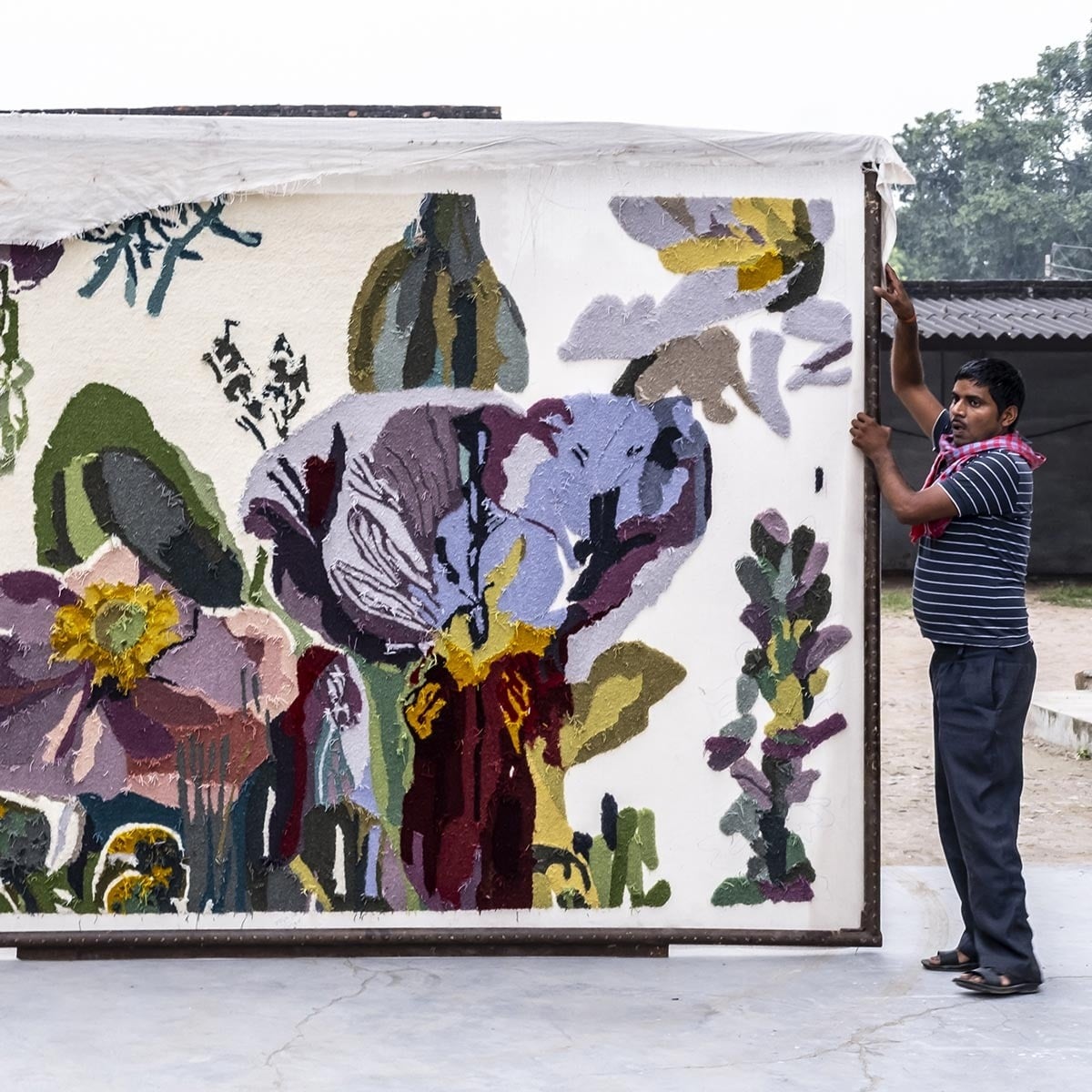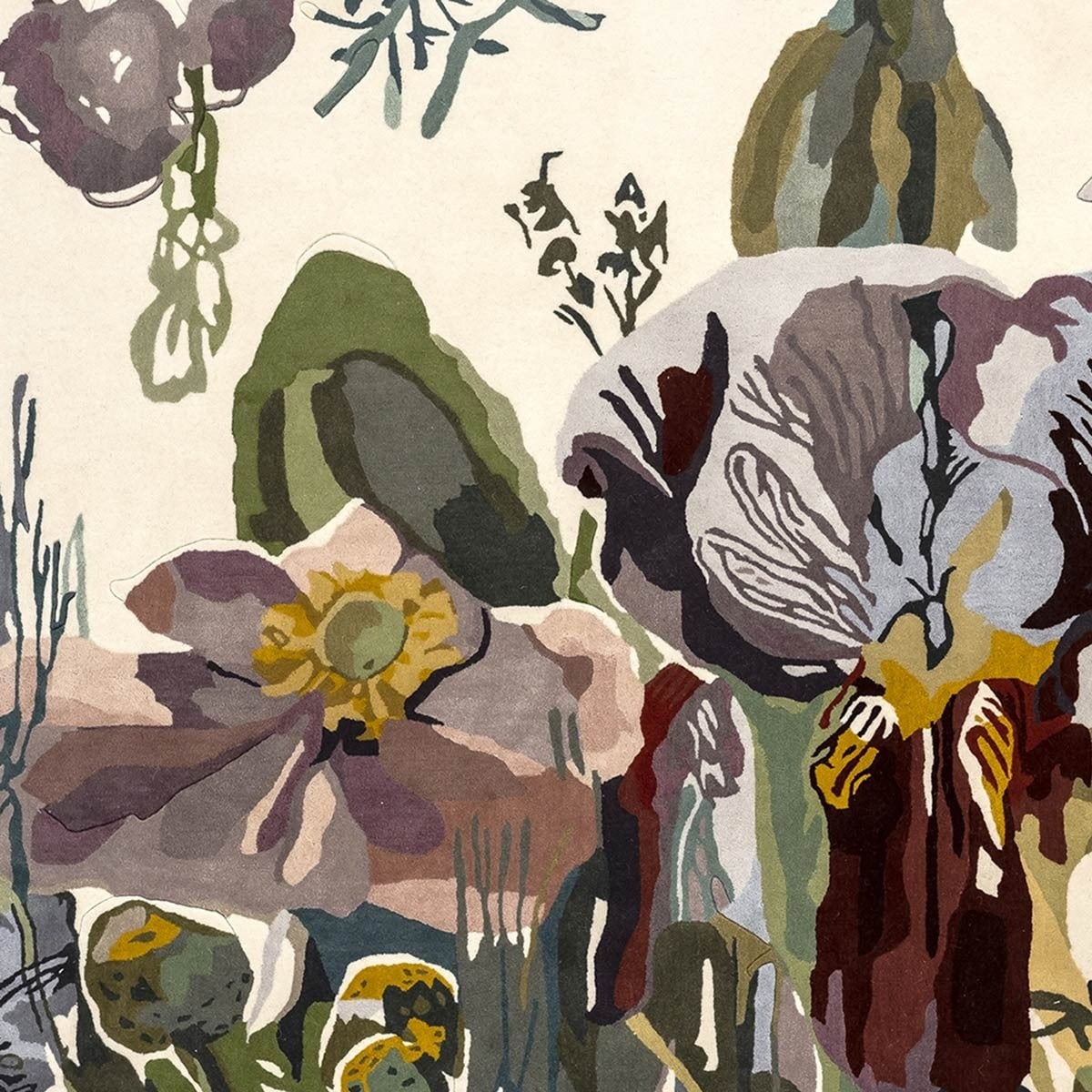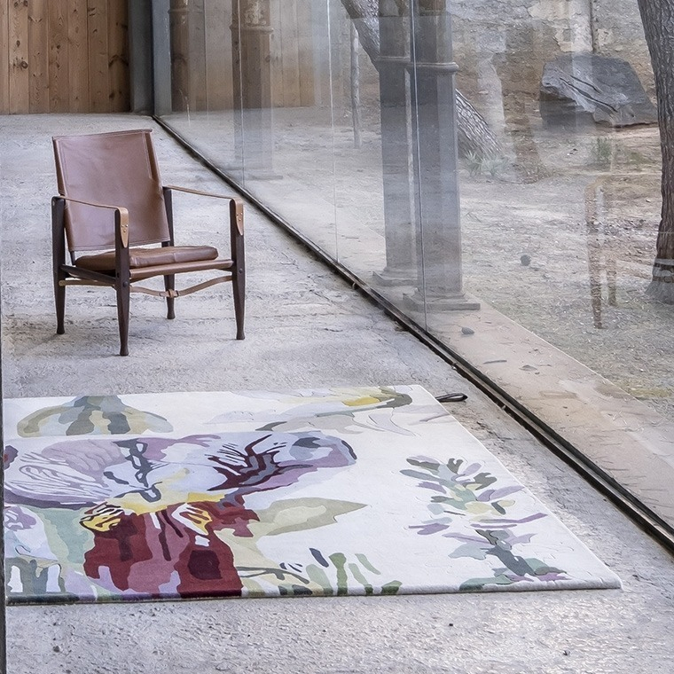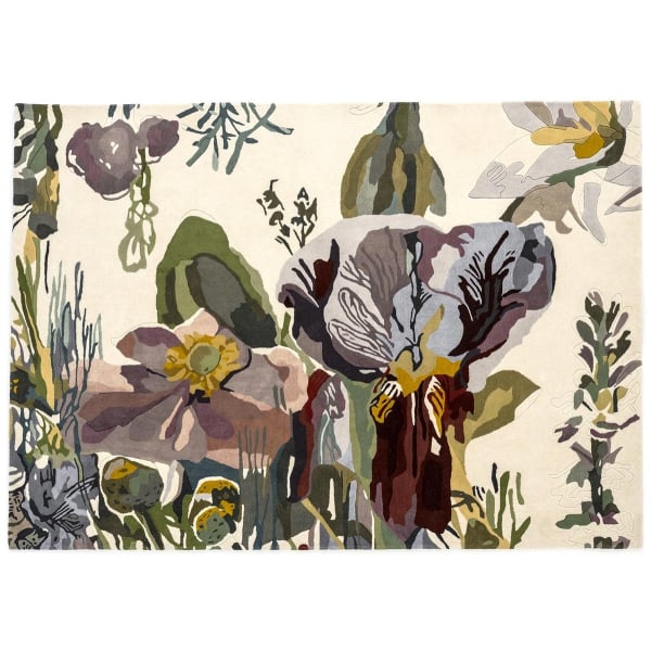 Fidèle reproduction d'une oeuvre originale de Santi Moix, le tapis Backyard illustre la beauté de plantes et fleurs réunies de manière aléatoire comme dans les cours fleuries. En s'intéressant à la fragilité de leurs pétales, l'artiste emploie des dizaines de teintes qu'empruntent les fleurs suivant leur cycle de vie. Cette oeuvre touchante et sensible est tuftée main dans une laine vierge douce et moelleuse dans laquelle on distingue parfois des lignes en bas relief, symbolisant le trait de crayon de l'artiste préliminaire à la peinture.