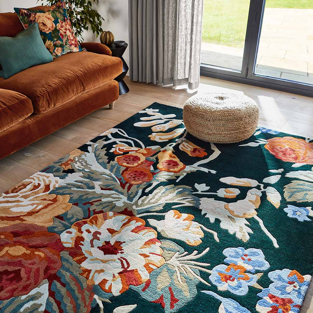 Le tapis Stapleton Park Navy affiche un élégant bouquet de digitales, oeillets, roses et myosotis. Ce motif floral aux couleurs automnales et fauves illumine le fond teinté d'un bleu marine profond. Tufté en pure laine vierge, ce tapis doux et moelleux aspire au repos dans un cadre chaleureux.