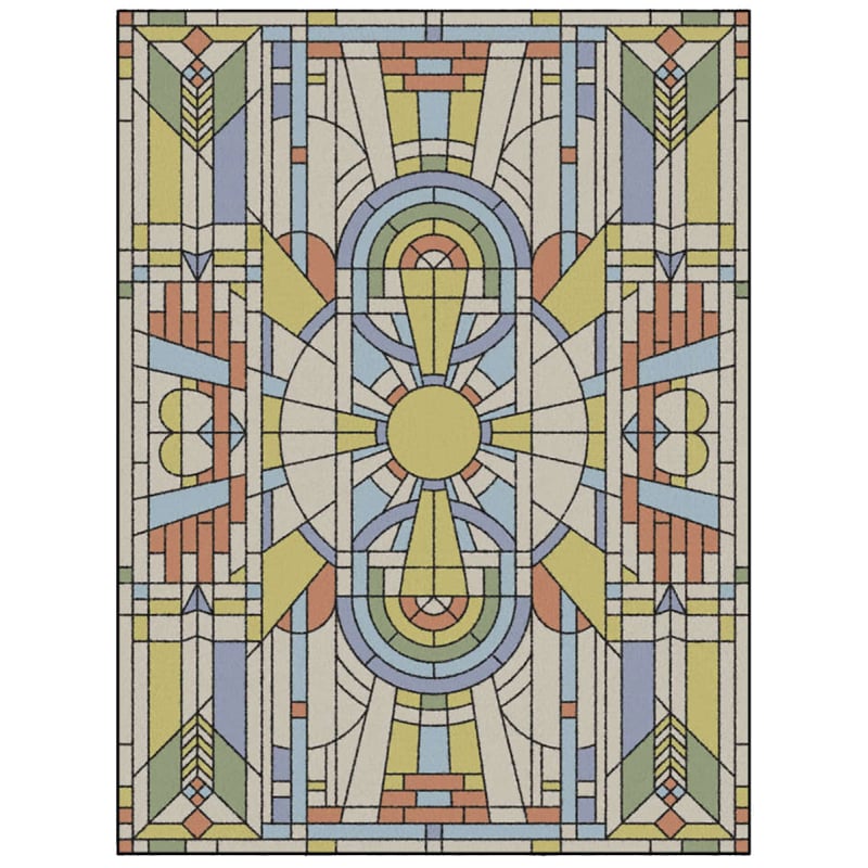 Ce tapis en vinyle texturé est une création unique qui s'inspire de l'esthétique des vitraux. Il présente des motifs iconographiques réalisés avec soin en utilisant des morceaux de couleur. Ces éléments sont tenus ensemble par un contour noir, ce qui confère au tapis une allure régulière et captivante. Cette proposition Yo2 a la capacité de transformer positivement l'atmosphère de la pièce. Les teintes vives et les jeux de lumière procurent une ambiance chaleureuse et accueillante, insufflant ainsi de la vie et de la vitalité à l'espace. Ce tapis, nommé Vetro 2, va au-delà de sa fonction purement décorative, car il véhicule un message d'amour.
