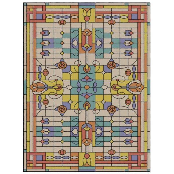 Vetro 3 est en vinyle texturé. Ce tapis est une création unique qui s'inspire de l'esthétique des vitraux. Il utilise habilement des morceaux de couleurs pour former des motifs iconographiques. Ces morceaux sont tenus ensemble par un contour noir, ce qui confère au tapis une apparence uniforme et captivante. Les couleurs vives et les reflets lumineux créent une ambiance chaleureuse et accueillante, insufflant ainsi de la vie et de l'énergie dans l'espace. Ce tapis va au-delà de sa fonction décorative en véhiculant un message d'amour. Il porte en lui une signification plus profonde, invitant à l'amour et à la bienveillance.