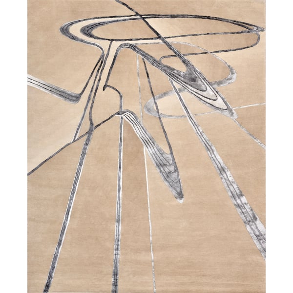 Le tapis Perpectives 02 a été imaginé par le studio Zaha Hadid Architects fondé par l'architecte du même nom, parmi les plus prestigieuse au monde. Composé d'intersections de lignes dynamiques, des interactions entre formes et fond sont intensifiées par la composition du tapis en fils de soie éclatant et fils de laine himalayenne au fini mat, magnifiquement noués main dans les ateliers Illulian
