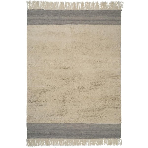 Humble act est le résultat d'un savoir-faire complexe et d'une composition minutieuse entre contraste et structure. Présenté par Linie Design, il est encadré à chaque extrémité par des sections tissées à plat et de longues franges. Le poil épais et doux amène confort et douceur. Fabriqué en pure laine de Nouvelle-Zélande, le matériau est respectueux de l'environnement et durable dans le temps.