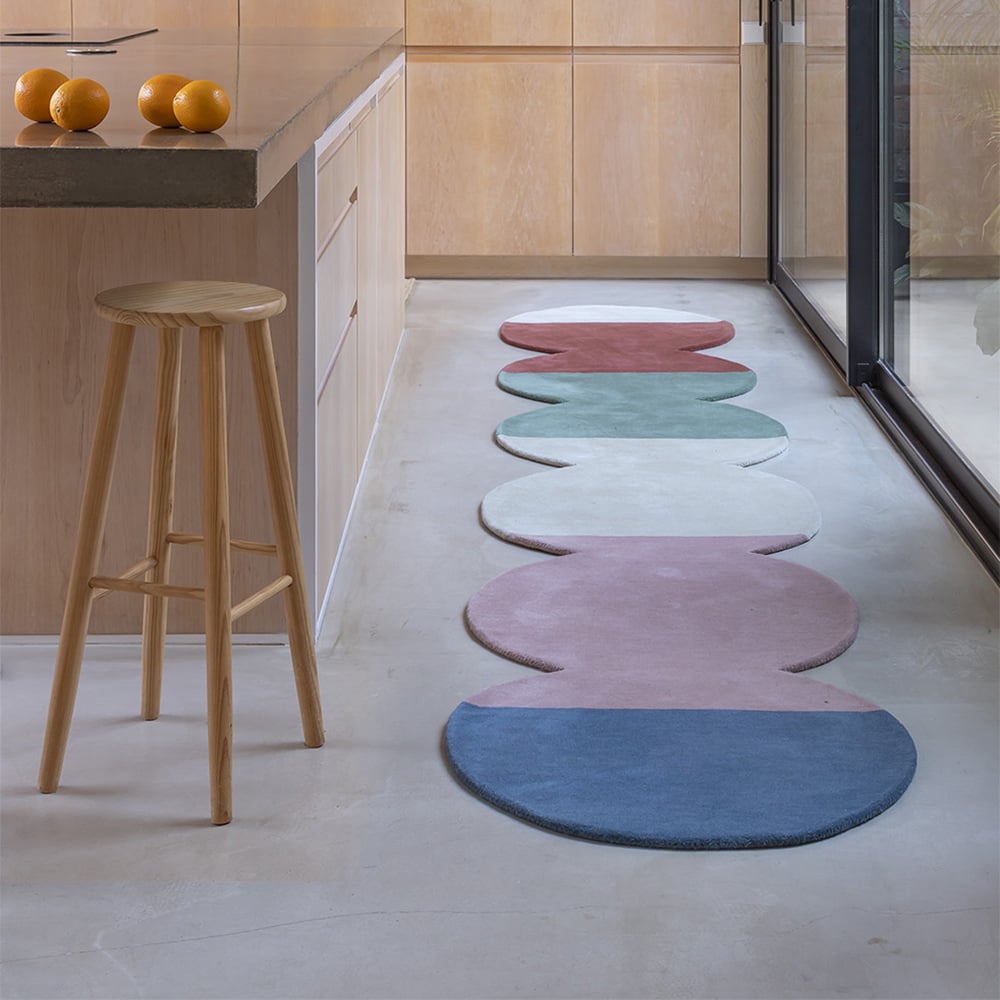 Avec le tapis Pearl 6m Runner de Nanimarquina, l'art prend vie avec une palette polychrome éblouissante. Six cercles s'entrelacent comme des serpents de lumière dans une danse sans fin, leurs couleurs changeantes se répondant en un contraste saisissant. Inspiré par l'art plastique de Sabine Finkenauer, cet accessoire en laine vierge incarne un style urbain et minimaliste.