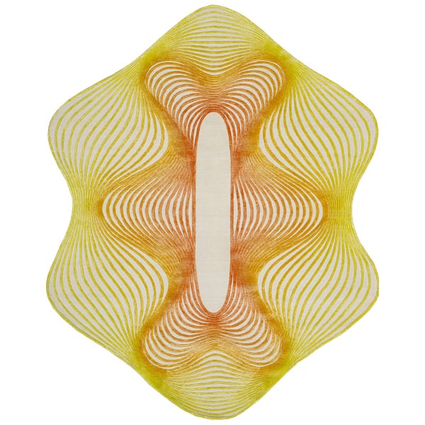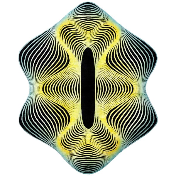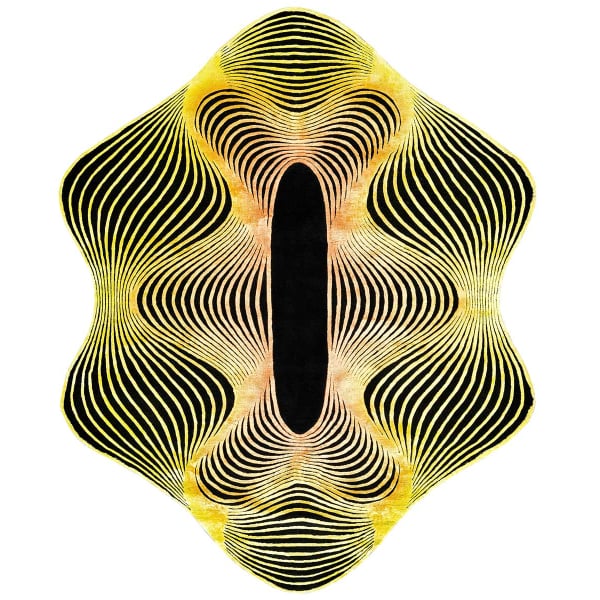 Le créateur Karim Rashid rend hommage à la culture égyptienne avec le tapis noué Ki, édité par Illulian. Le modèle plonge le regard dans l’effet énergisant des courbes concentriques en plein mouvement. Ces halos, colorés d’un jaune fluorescent, oscillent autour d’un ka sombre ou clair, une force vitale qui survit après la mort. La palette accentue l’illusion de profondeur, outre le dynamisme qu’elle apporte aux espaces.