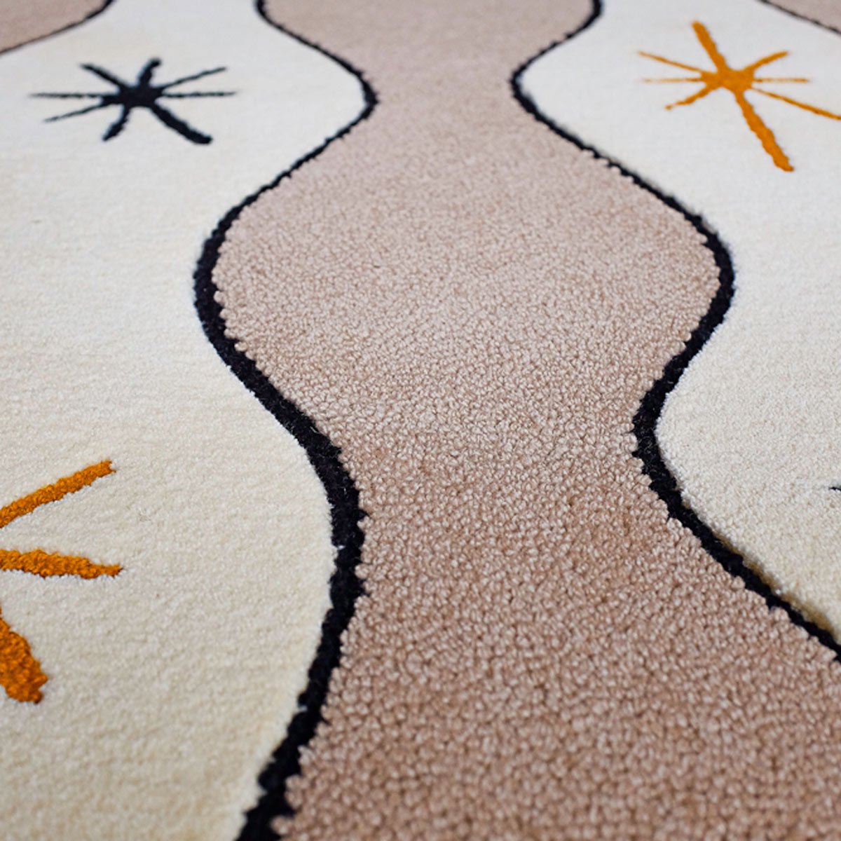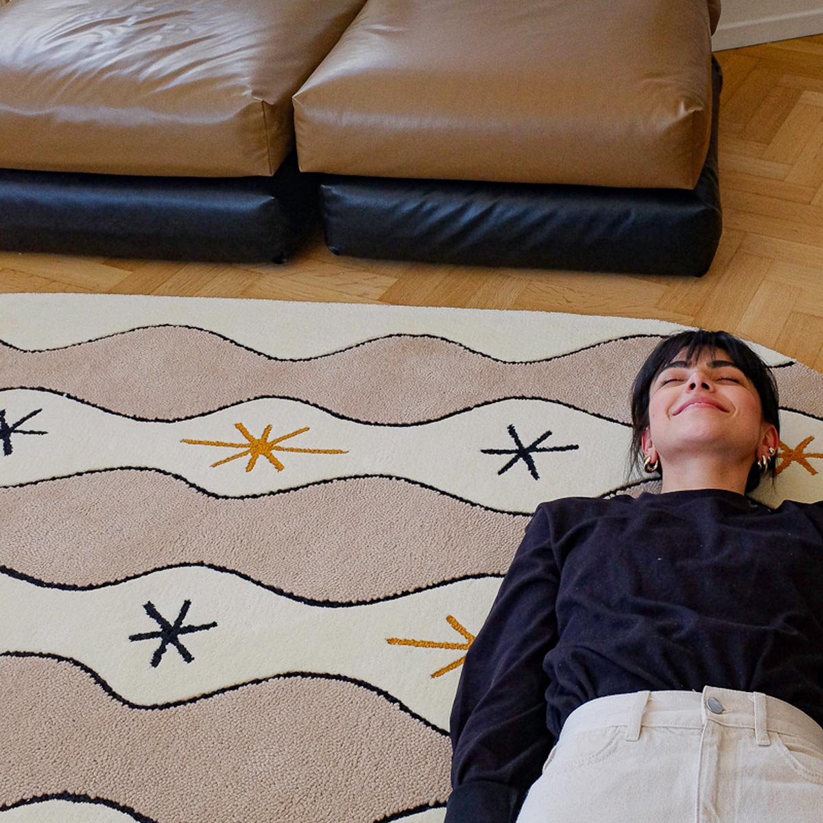 Inspiré des plages ensoleillées, le tapis Sabbia égaie les intérieurs avec un avant-goût de vacances. Le motif illustre des rides de sable, ponctuées d’étoiles de mer laissées par les vagues. L’évasion est alors instantanée, transposant les espaces dans une ambiance méditerranéenne. Les figures reflètent un art de vivre à la Tapicheri, reconnaissable par un style gai, créateur de détente et de bonne humeur.