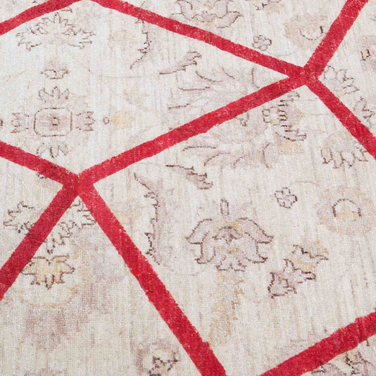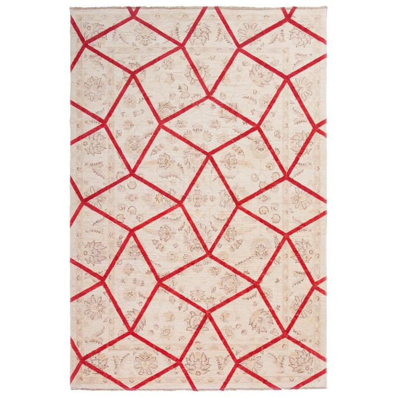 Tapis de laine noué à la main signé Nodus, Double Layered Red se présente comme un passage entre deux époques. Il trace un maillage vif aux accents géométriques sur une tapisserie florale d’autrefois. Le moderne impose sa présence sans éclipser les réminiscences du passé. L’intérieur s’habille alors d’un raffinement contemporain teinté de nostalgie.