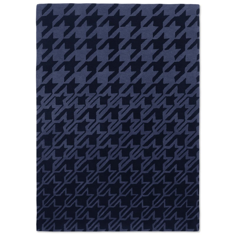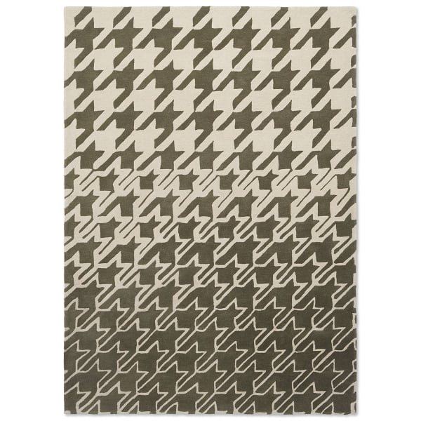 Le sol transpose les espaces aux années 1950, l’âge d’or du motif pied-de-poule, à travers Houndstooth de Ted Baker. Il s’agit d’un tapis de laine au charme contemporain, tissé en sergé sur un métier de bois traditionnel. Les figures illustrent le célèbre graphisme bicolore dans un format surdimensionné. Elles suivent un rythme régulier, d’un dynamisme amplifié par une soudaine inversion de couleurs.