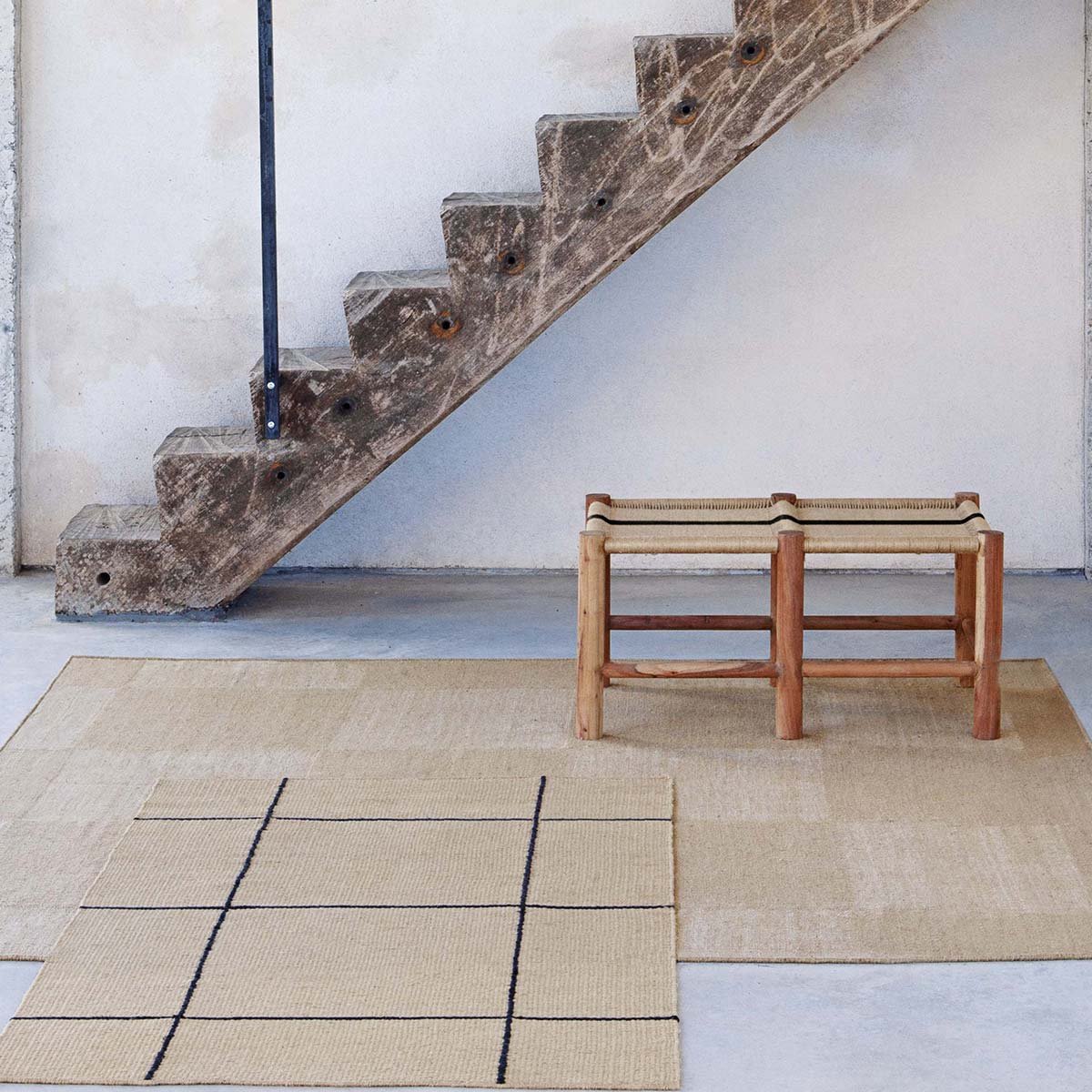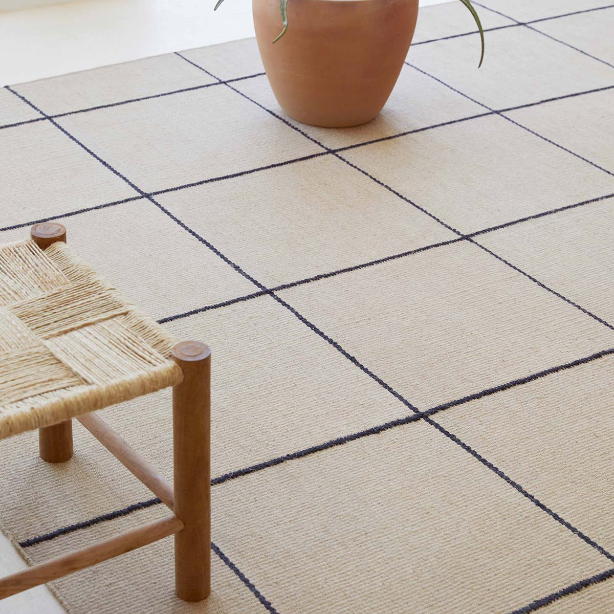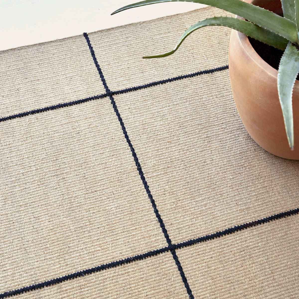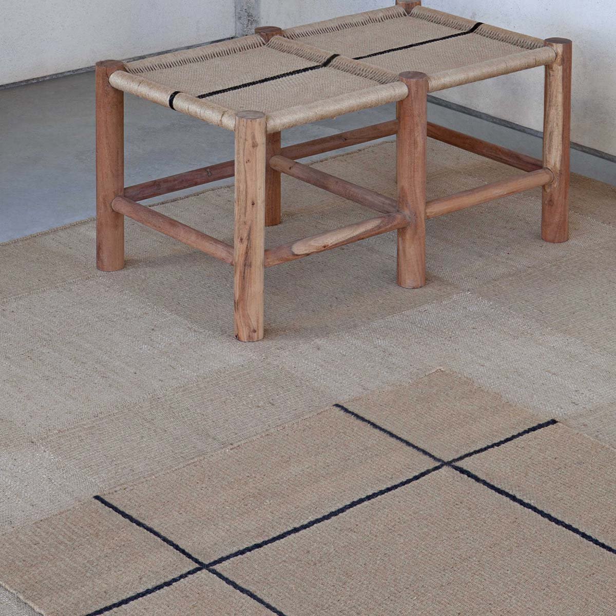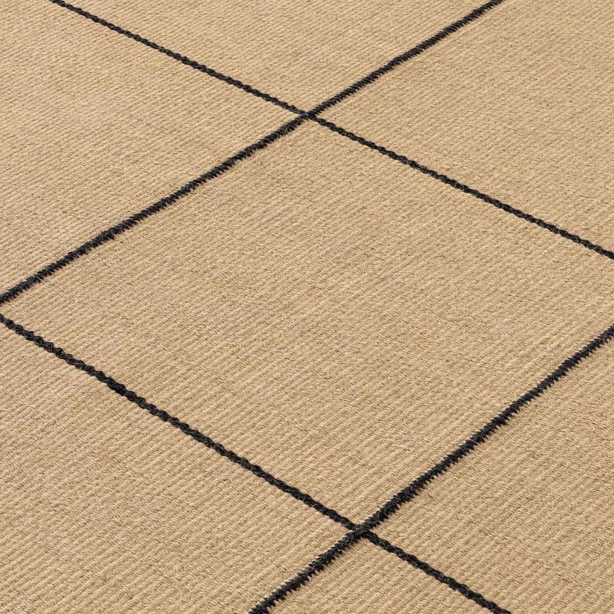 Création signée Inma Bermudez et Gan Rugs, le tapis kilim Roots 01 accroche le regard avec le contraste bicolore de son motif carrelé. Cette natte de jute tissée arbore une broderie de lignes brunes en coton délimitant les carreaux. La qualité artisanale et le temps investi apportent un caractère précieux à l’ensemble, outre l’effet contemporain accentué par la luminosité naturelle des fibres.