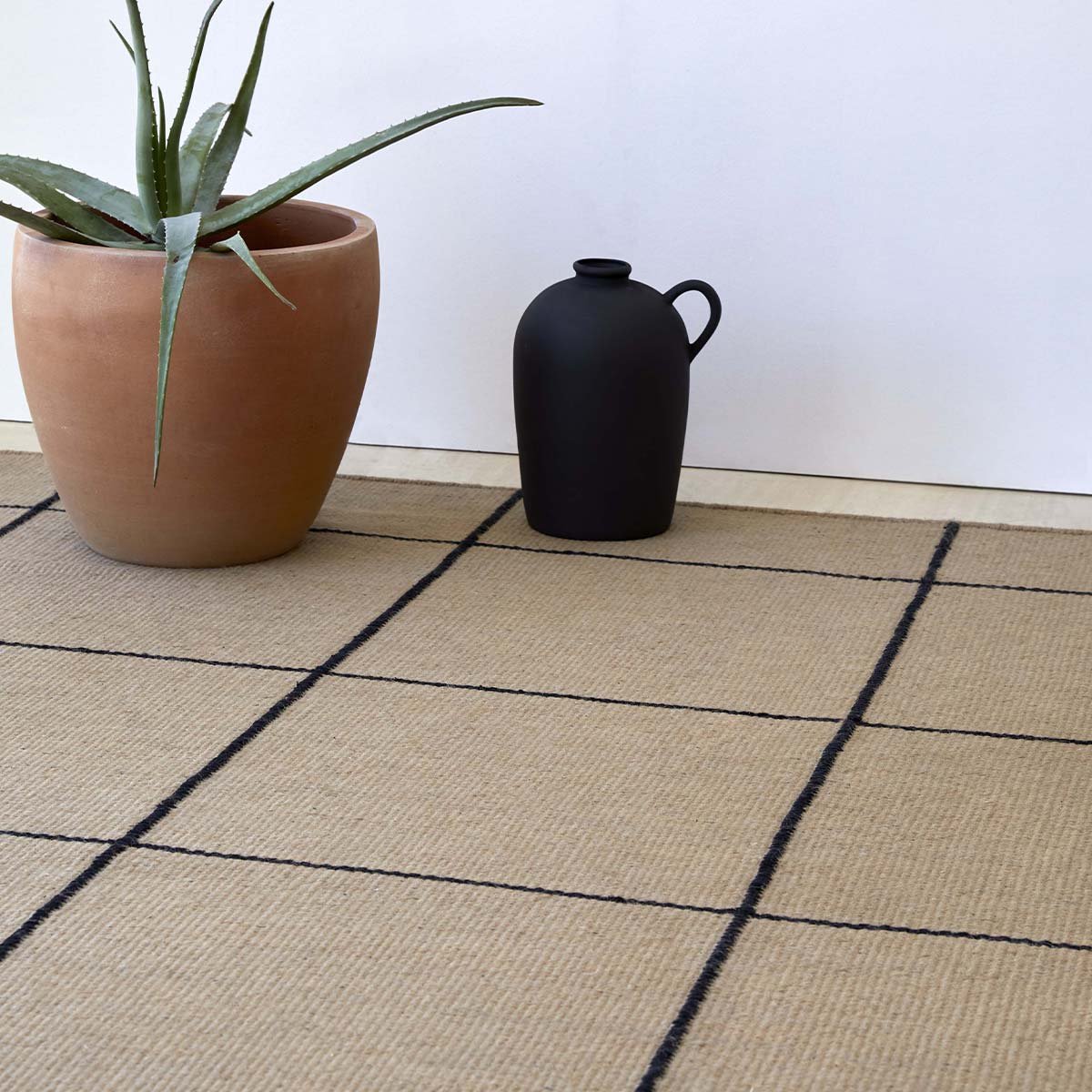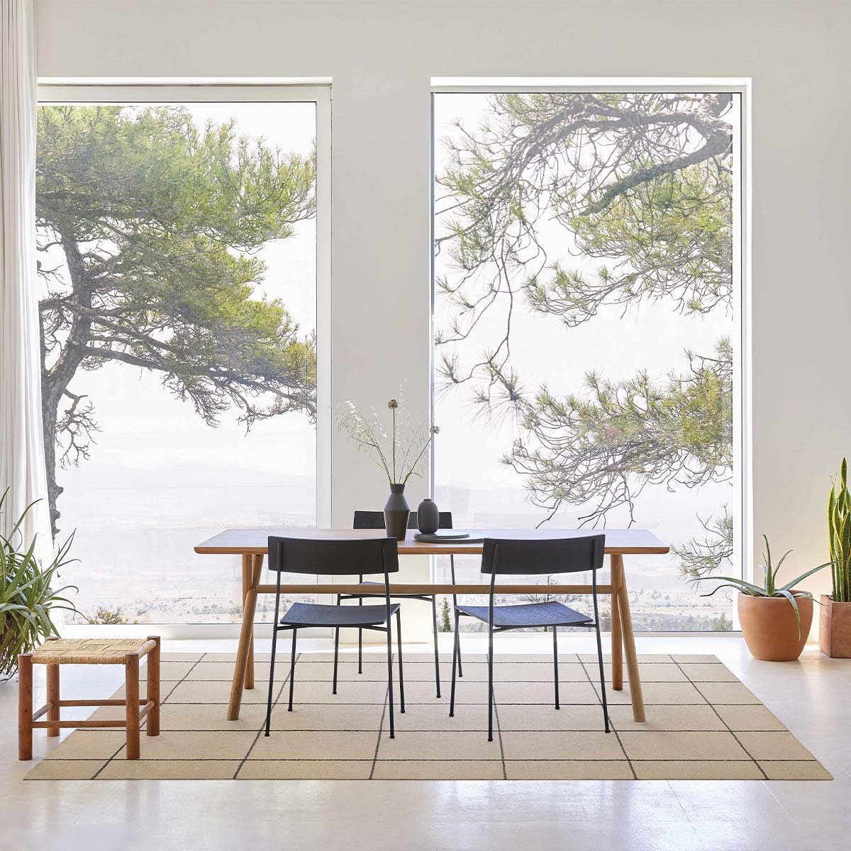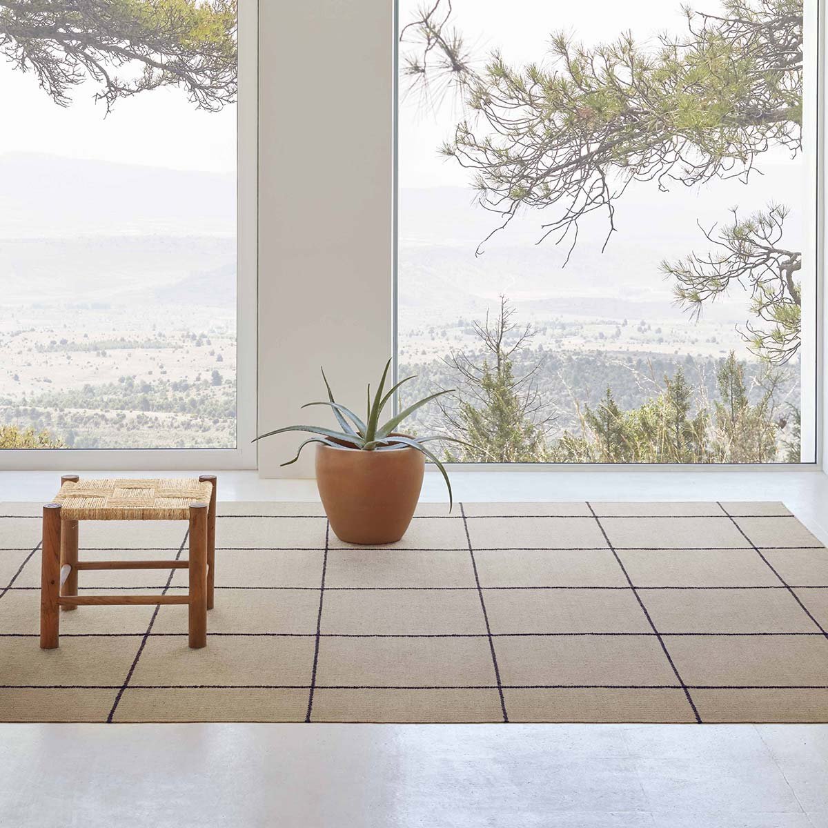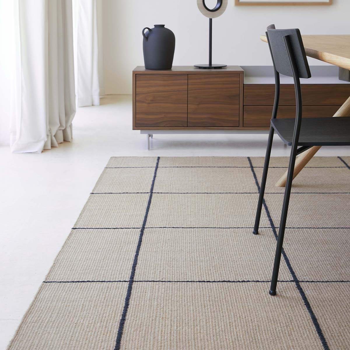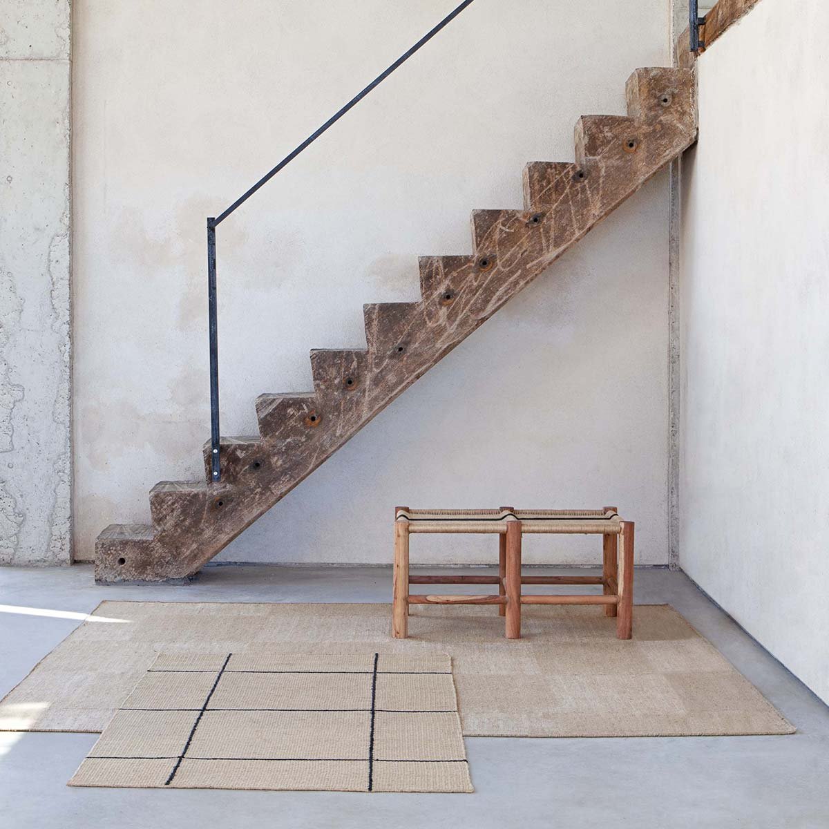 Création signée Inma Bermudez et Gan Rugs, le tapis kilim Roots 01 accroche le regard avec le contraste bicolore de son motif carrelé. Cette natte de jute tissée arbore une broderie de lignes brunes en coton délimitant les carreaux. La qualité artisanale et le temps investi apportent un caractère précieux à l’ensemble, outre l’effet contemporain accentué par la luminosité naturelle des fibres.