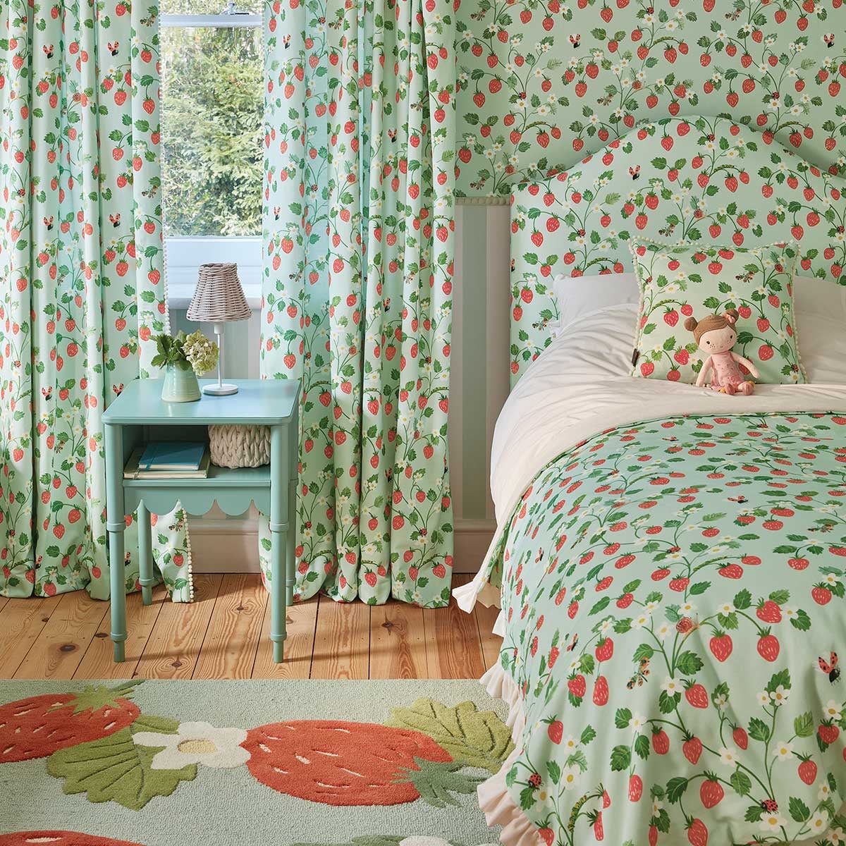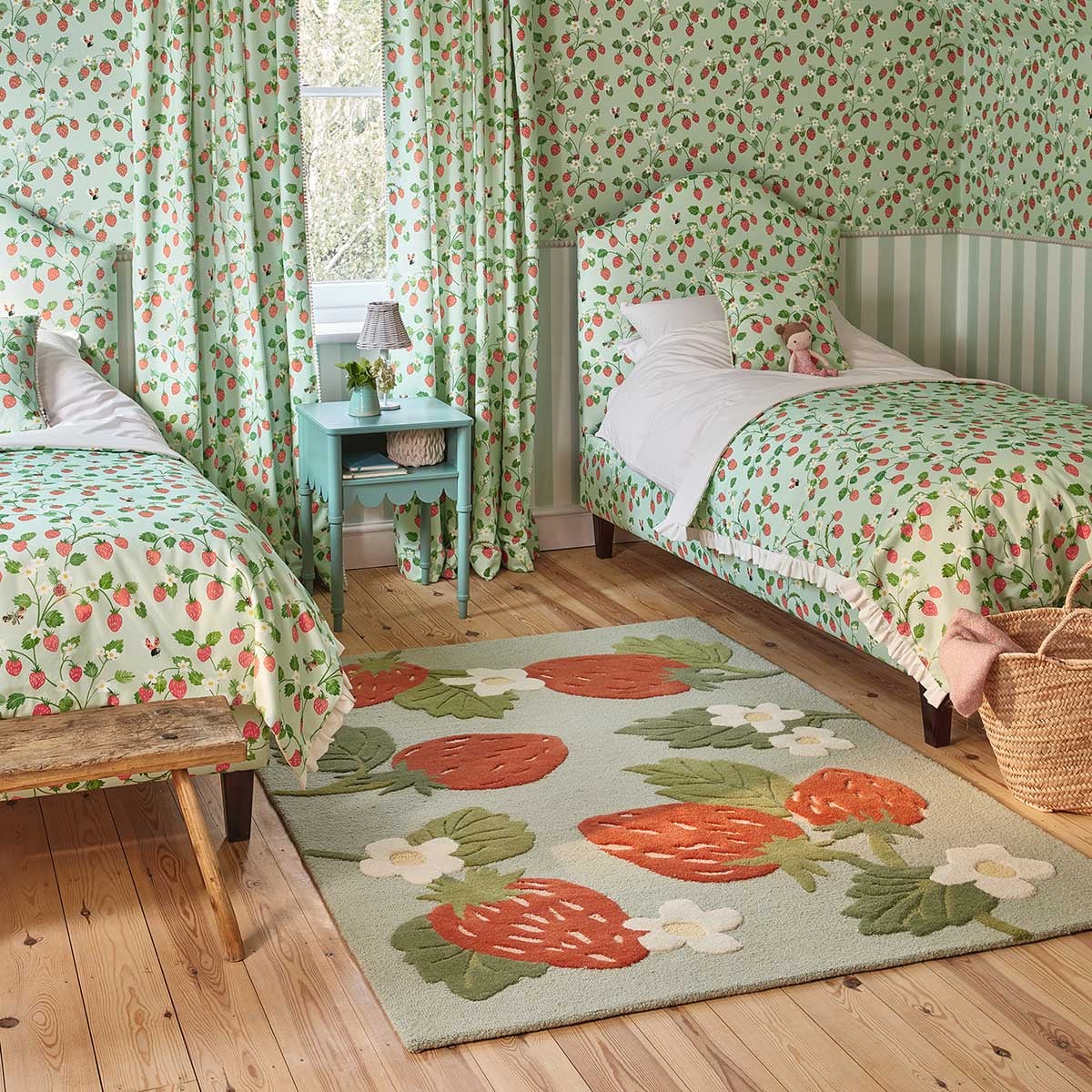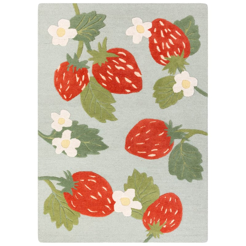 Fraises gourmandes, fleurs délicates et feuilles graciles dépeignent une scène pleine de vie sur le tapis rectangulaire Strawberry Patch de Villa Nova. Les formes généreuses s’élèvent en un jeu de textures, où boucles et piles coupées s’entrelacent dans une harmonie tactile. Chaque détail, façonné à la main, révèle le raffinement d’un savoir-faire artisanal, tandis que la laine, douce et noble, exalte chaque relief de cette composition poétique.