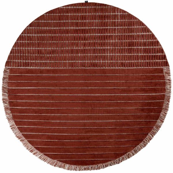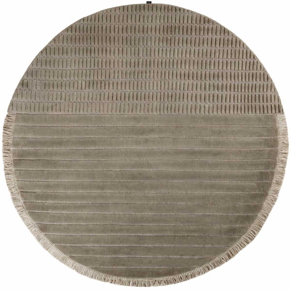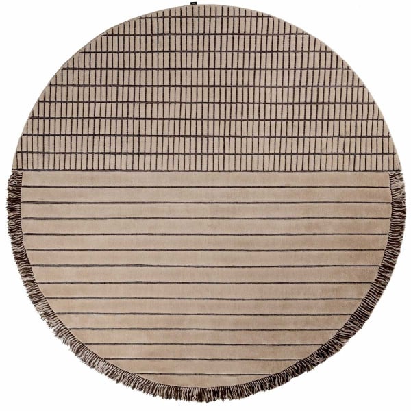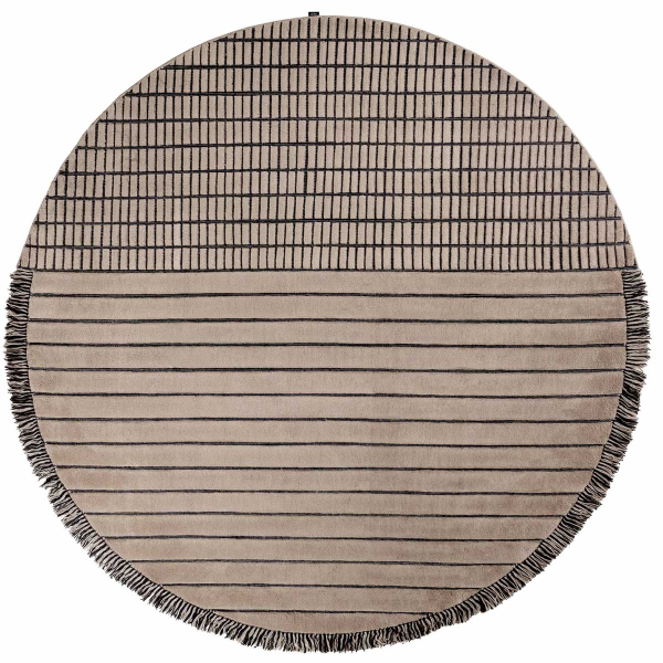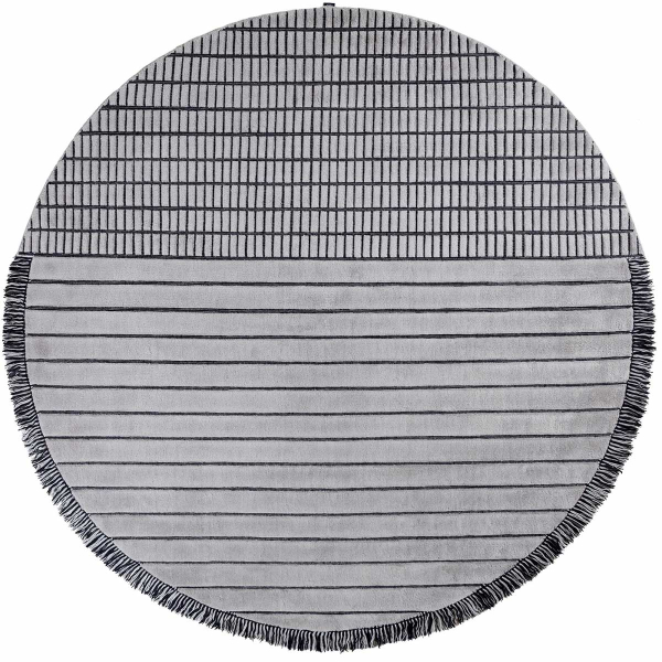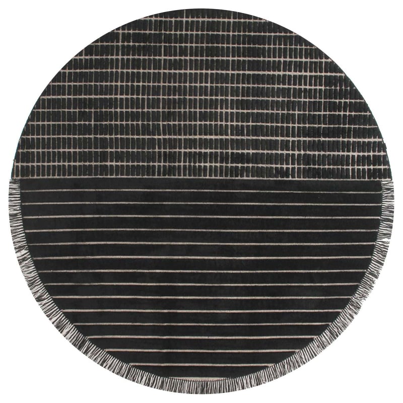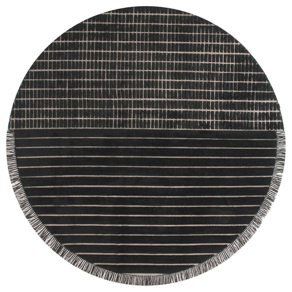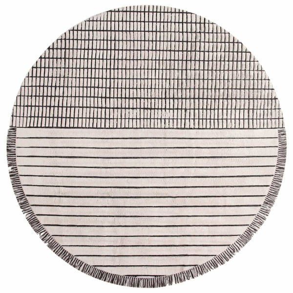 Le tapis RD Grid Berber Round présente un motif géométrique audacieux, organisé en deux moitiés équilibrées. Dans une forme circulaire, une succession de rectangles verticaux dialogue avec un rythme de lignes horizontales. Cette pièce en laine, nouée à la main, incarne une rencontre entre esthétique contemporaine et tradition berbère. La maison Amini traduit cette dualité dans un langage sobre et graphique.