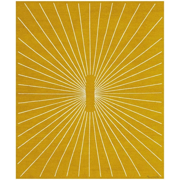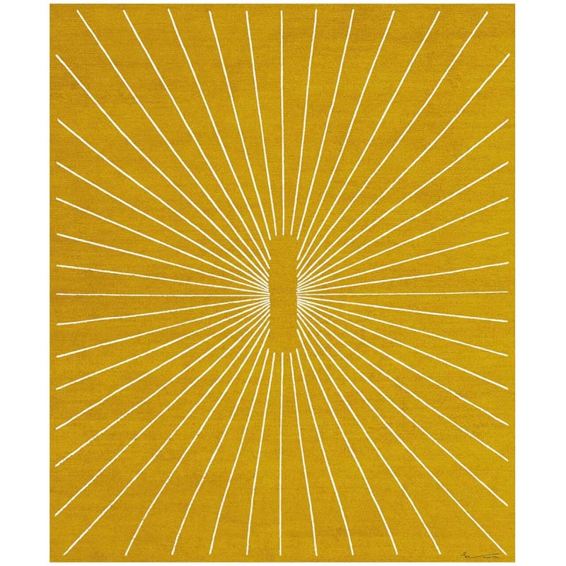 Le tapis Utopia affiche une expansion lumineuse, où chaque ligne rayonne depuis un noyau central. Le motif géométrique abstrait joue sur les contrastes de texture pour structurer des faisceaux ordonnés. Confectionné en laine et en soie, le dessin naît d’un nouage manuel qui souligne la rigueur du tracé. À travers un langage visuel épuré, Amini présente une esthétique graphique et poétique.