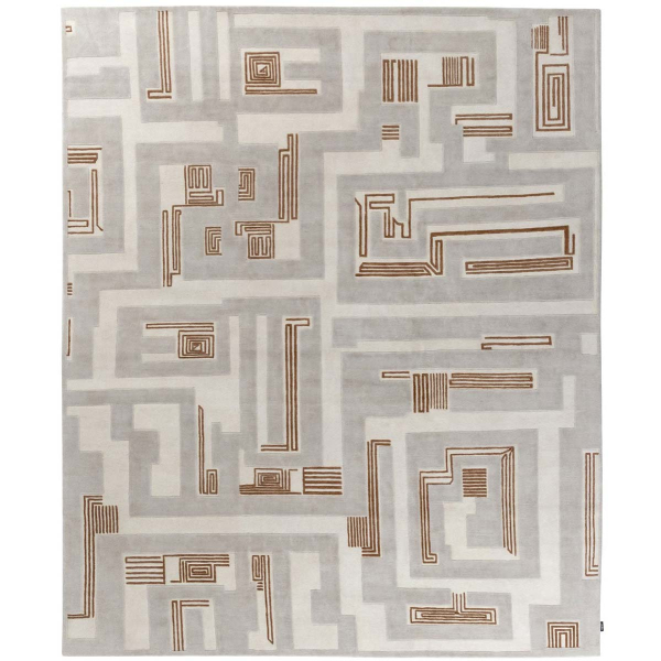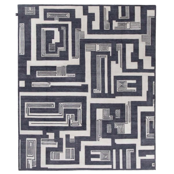 Le tapis Maze met en scène un motif géométrique inspiré d’une illustration textile abstraite. Comme un plan d’architecture énigmatique, des lignes droites s’imbriquent dans des parcours complexes. Ce décor en laine révèle une surface riche en contrastes, empreinte d’une tension graphique. Noué main, il exprime le savoir-faire du fabricant Amini dans une composition au tracé quasi mathématique.