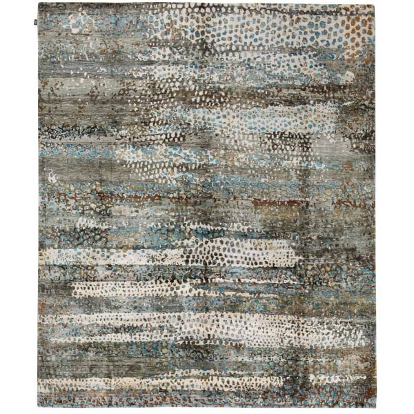 Le tapis Flora explore un motif abstrait inspiré des figures végétales et de paysages arborés. Le dessin, composé de formes diffuses, évoque un monde onirique. La soie naturelle confère un éclat subtil et une richesse tactile singulière. Nouée à la main, cette pièce conçue par Amini traduit une approche sensible du graphisme et de la matière.