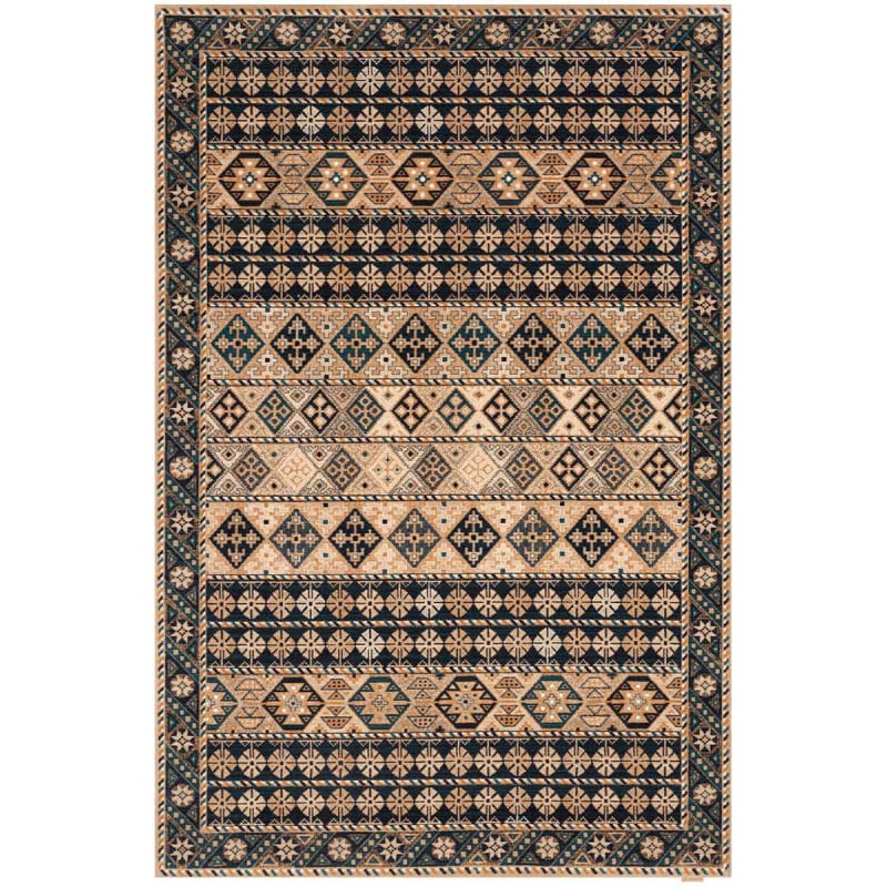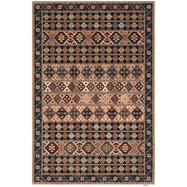 Astrid est un tapis qui présente un motif géométrique inspiré d’un panneau brodé arménien exposé au Victoria and Albert Museum à Londres. Il révèle une suite de figures géométriques avec losanges, croix stylisées et rosaces. Le tout est encadré dans une frise dense et ordonnée. Signé Brintons, ce modèle transmet l’écho du savoir-faire arménien du XIXe siècle.