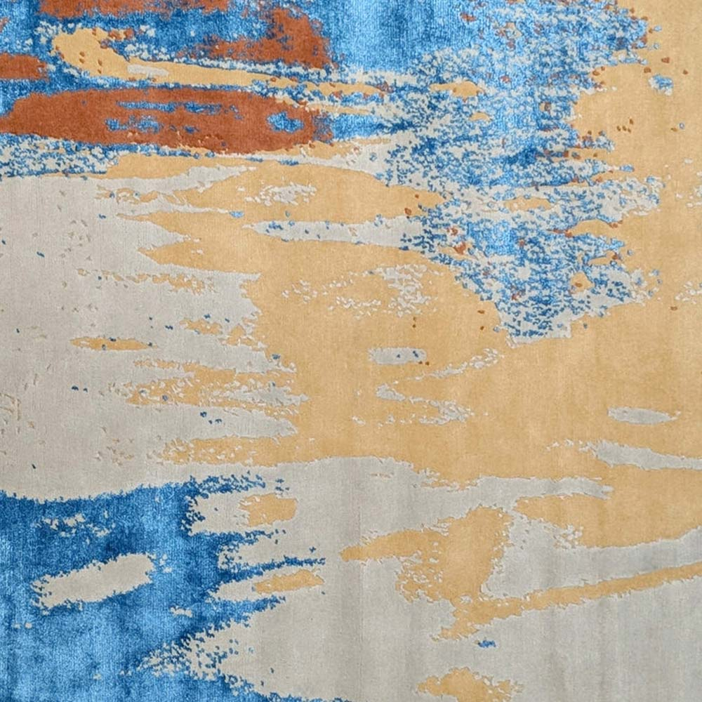Swan est un tapis au motif abstrait, noué main, imaginé par Serge Lesage. Inspiré par les premières lueurs du jour, le dessin déploie des textures vives et changeantes dans un paysage rêvé. Chaque nuance s’inscrit dans un mouvement fluide où les teintes se fondent avec subtilité. Composée majoritairement de laine, cette création incarne la douceur et la densité d’un relief naturel.