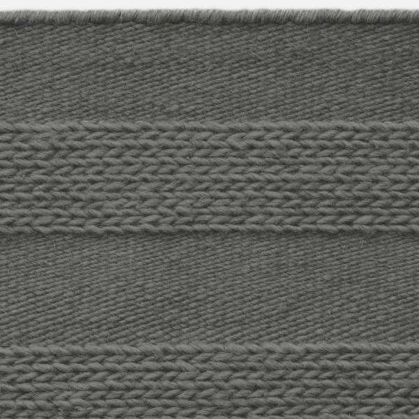 Souma Stripe est un tapis qui déploie un motif à rayures texturées, entre lignes obliques serrées et torsades épaisses. Le dessin prend vie grâce à un tissage à la main, révélant la structure généreuse du fil. Ce jeu de reliefs s’anime à travers la laine, matière noble et dense. Le savoir-faire de Kvadrat s’exprime dans chaque nœud, évoquant une forme de géométrie intuitive.