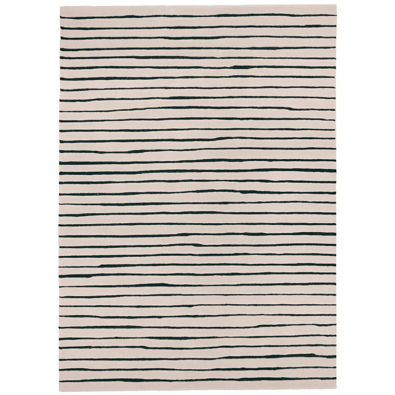 À travers ses rayures ondoyantes, le tapis Linos célèbre l’imperfection d’un tracé graphique. Les bandes, d’épaisseurs variables, structurent une surface rythmée et méditative. Sa composition entièrement en laine lui confère une présence chaleureuse, soulignée par l’alternance de fibres rasées et non coupées. Ce modèle tufté à la main incarne la rigueur artisanale de Romo.