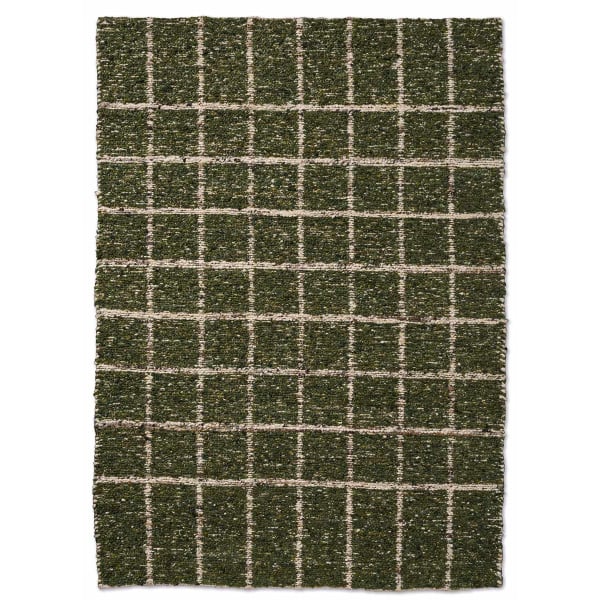 Craft Jack is a wool rug with a geometric check pattern. Thick lines intersect on its surface, drawing a regular grid. The minimalist composition is based on a subtle contrast between the light weft and a grainy background. Signed Brink & Campman, this model highlights the relief of manual weaving and develops a sober graphic language.