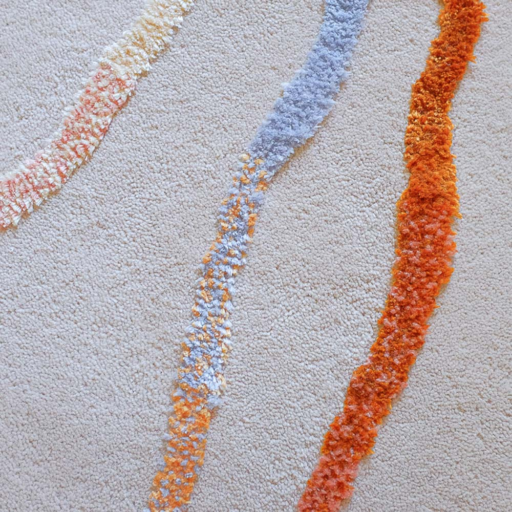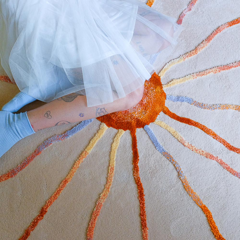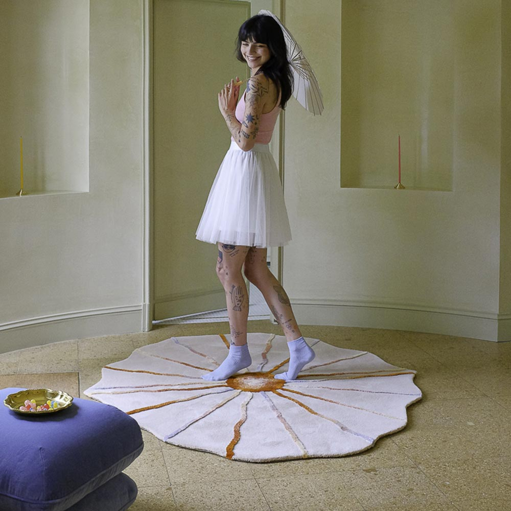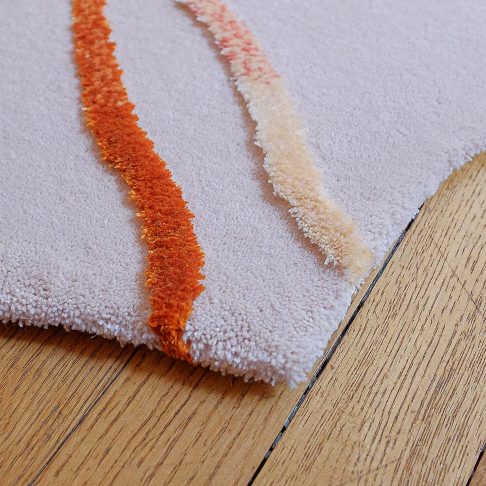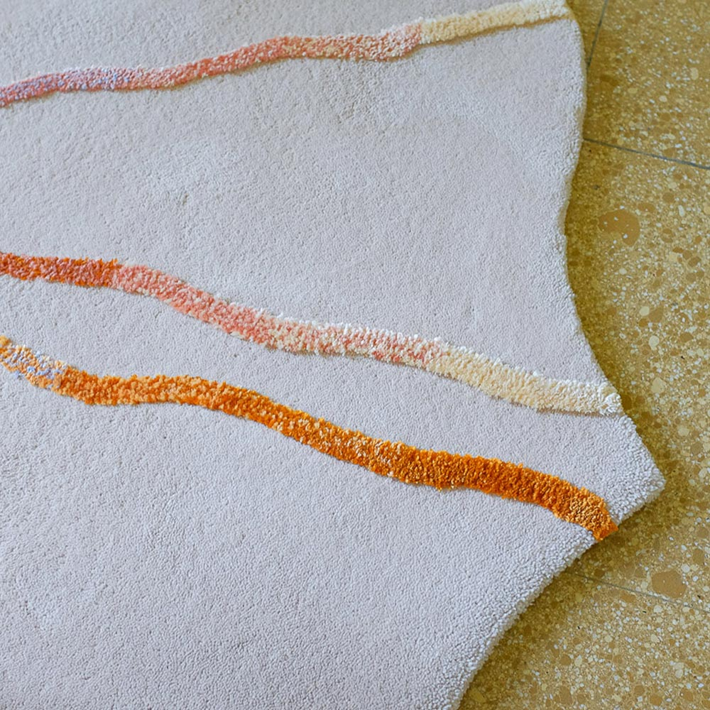 Petitcoat présente des contours ondulés et un centre irradiant de lignes sinueuses. Ce tapis conçu par Tapicheri déploie un motif graphique dessiné avec une poésie tactile. Depuis son coeur texturé, un réseau de bandes souples s’étend jusqu’aux extrémités irrégulières. Le contraste entre les hauteurs de fibres enrichit l’expérience sensorielle au toucher.