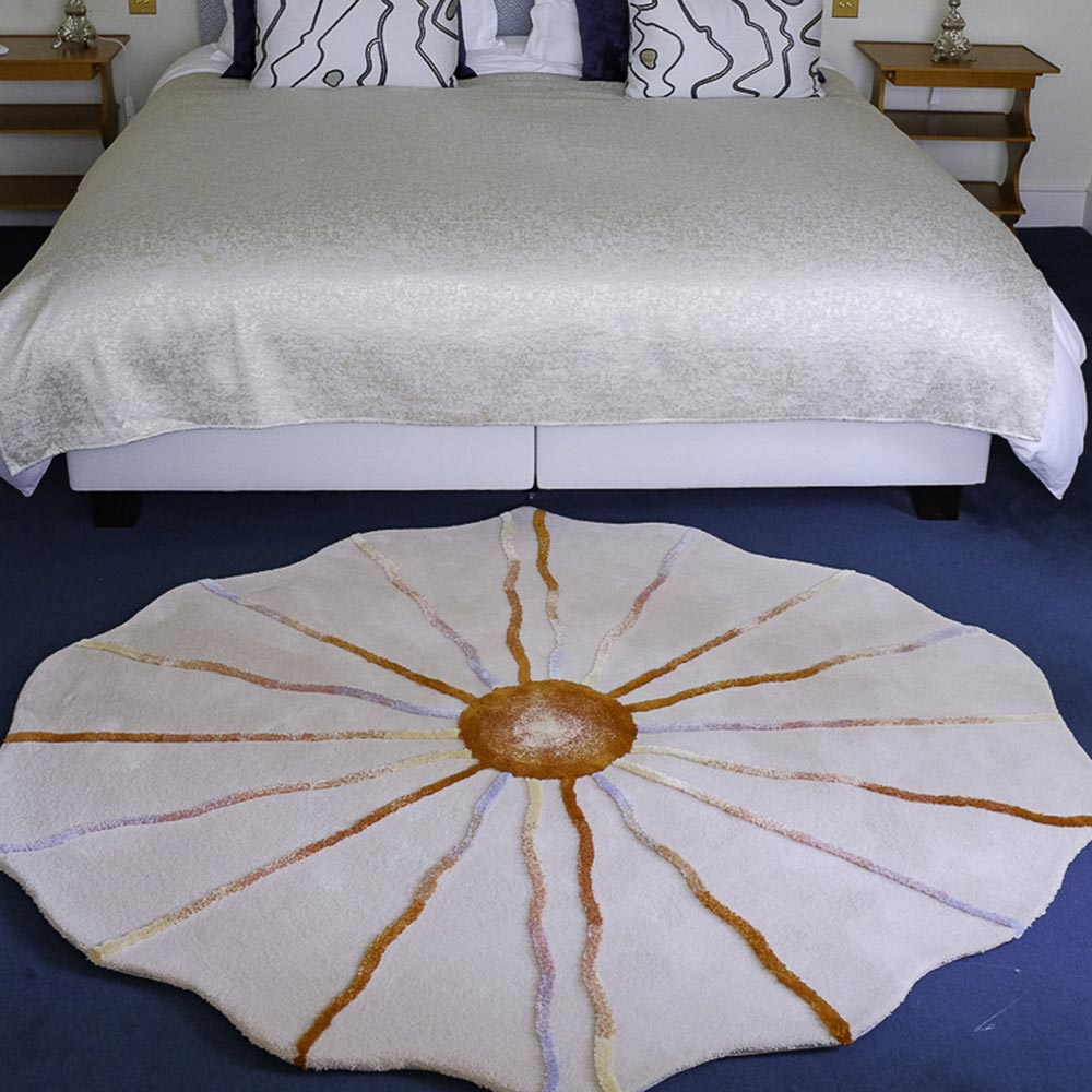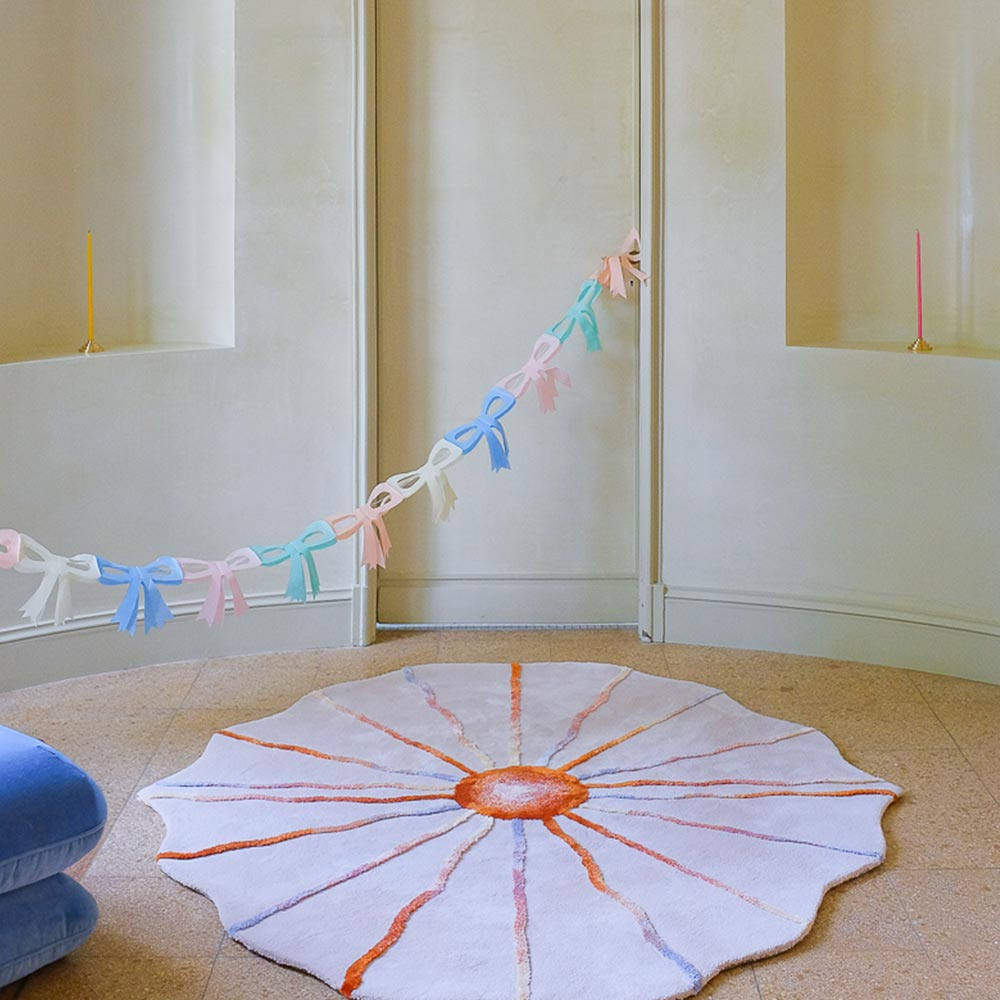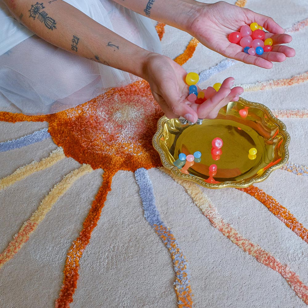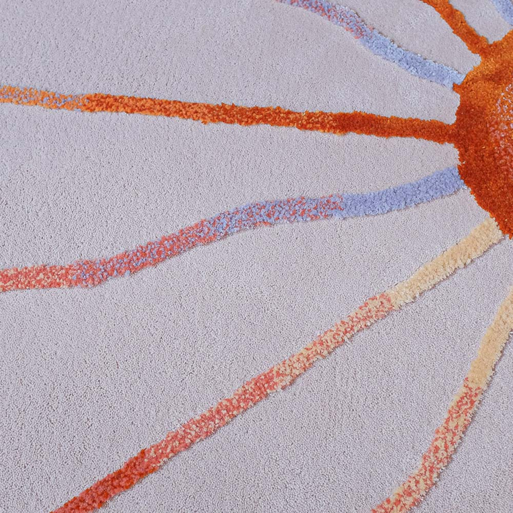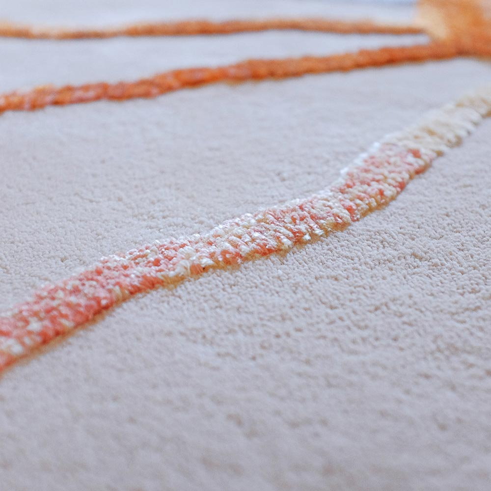Petitcoat présente des contours ondulés et un centre irradiant de lignes sinueuses. Ce tapis conçu par Tapicheri déploie un motif graphique dessiné avec une poésie tactile. Depuis son coeur texturé, un réseau de bandes souples s’étend jusqu’aux extrémités irrégulières. Le contraste entre les hauteurs de fibres enrichit l’expérience sensorielle au toucher.