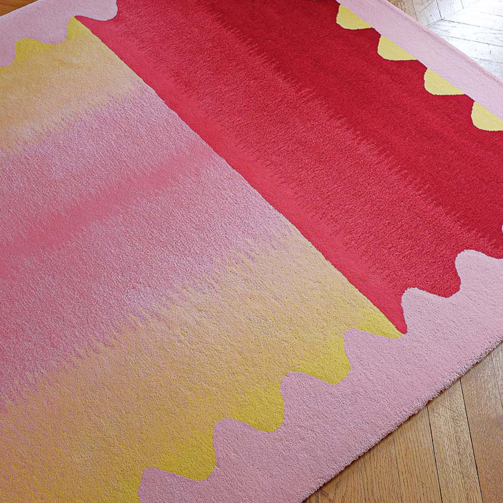 Avec ses contours festonnés et ses aplats contrastés, Sunrise déploie une composition en dégradé vibrant. Son motif graphique audacieux juxtapose des bandes intenses et des nuances adoucies dans une tension colorée. Les bordures dentelées rythment l’ensemble comme une pulsation visuelle maîtrisée. Conçu par Tapicheri, ce tapis instaure une présence forte, entre rigueur et émotion.
