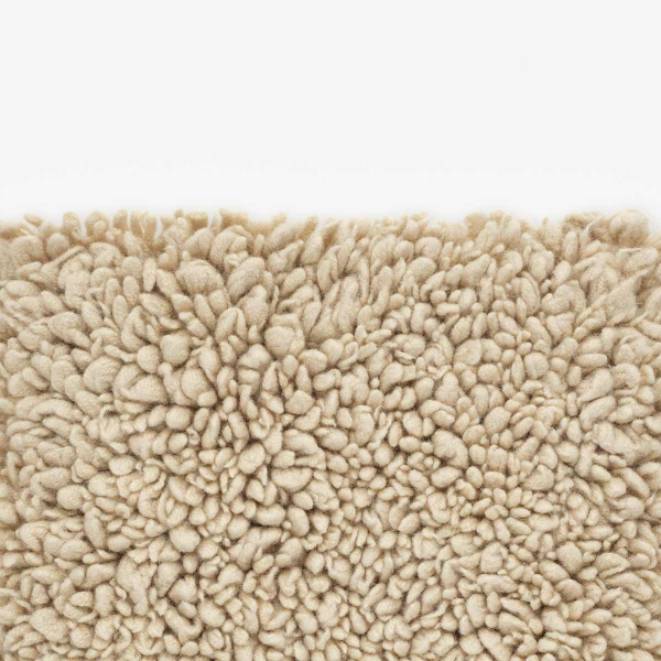 March présente un motif bouclé à l’aspect volontairement irrégulier, inspiré des textures naturelles. La surface est composée d’anneaux serrés qui forment une structure dense et tactile. Ce tapis tufté en laine de Nouvelle-Zélande révèle un relief généreux et vivant. Kvadrat propose ici une matière au toucher enveloppant, pensée pour enrichir l’espace par sa profondeur visuelle.